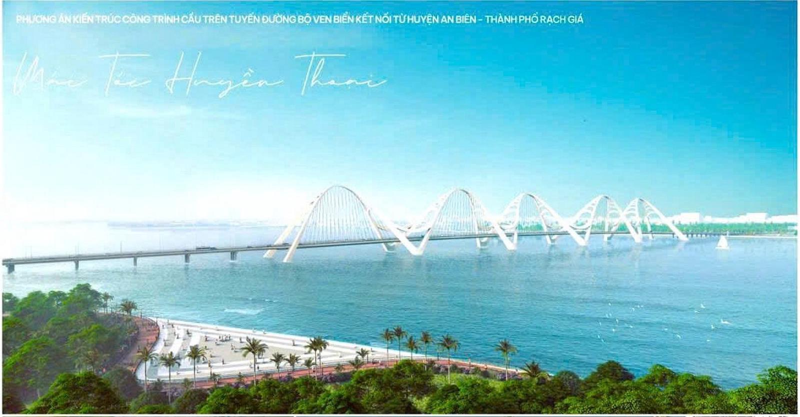 Phối cảnh cầu trên tuyến đường bộ ven biển kết nối từ An Biên - Rạch Giá, vừa được khởi công. Ảnh: Cổng TTĐT An Giang
