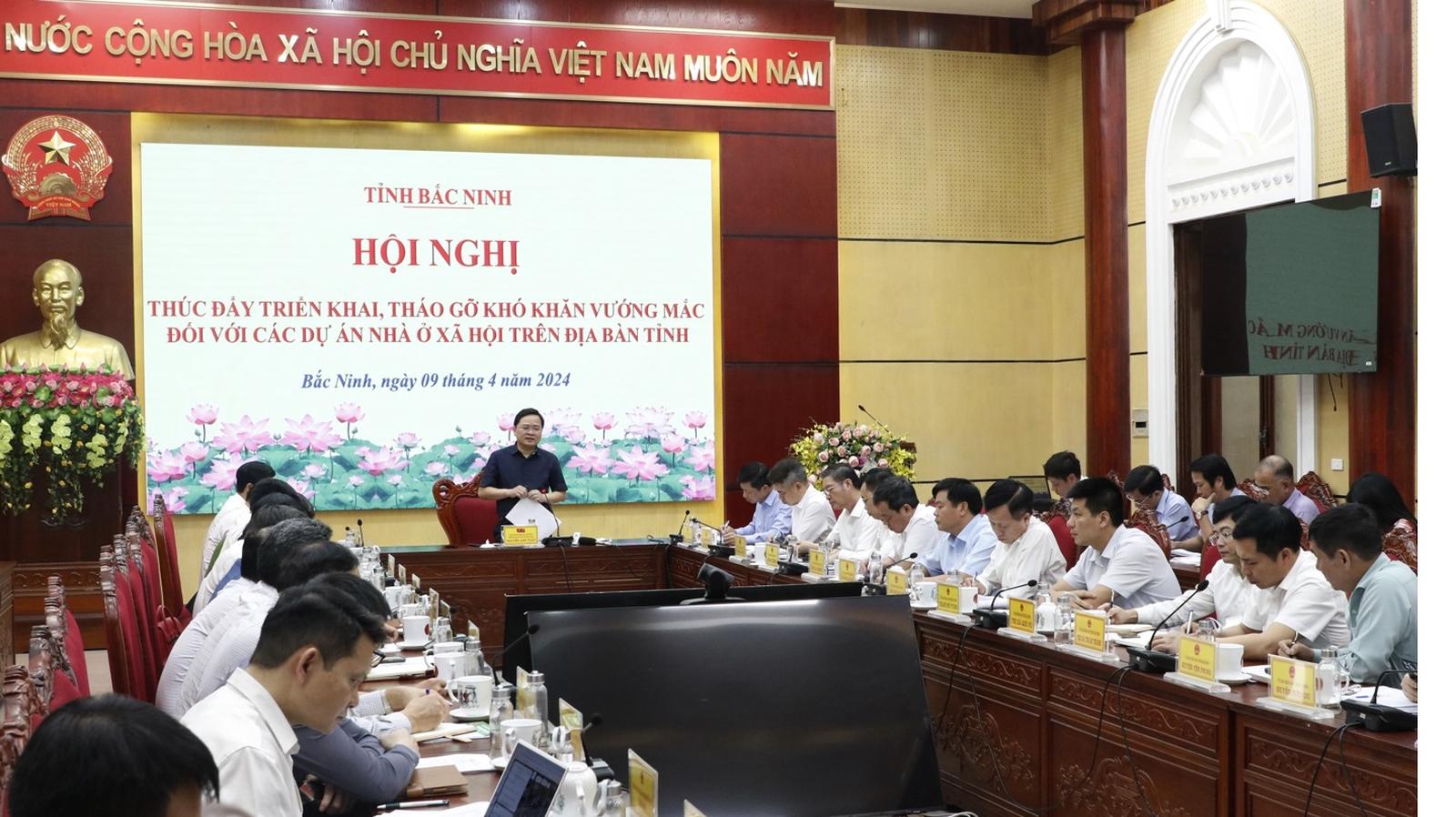 Chiều 9/4, Bắc Ninh tổ chức hội nghị thúc đẩy triển khai, tháo gỡ các khó khăn, vướng mắc đối với các dự án nhà ở xã hội trên địa bàn tỉnh. Bí thư Tỉnh uỷ Bắc Ninh Nguyễn Anh Tuấn chủ trì hội nghị.