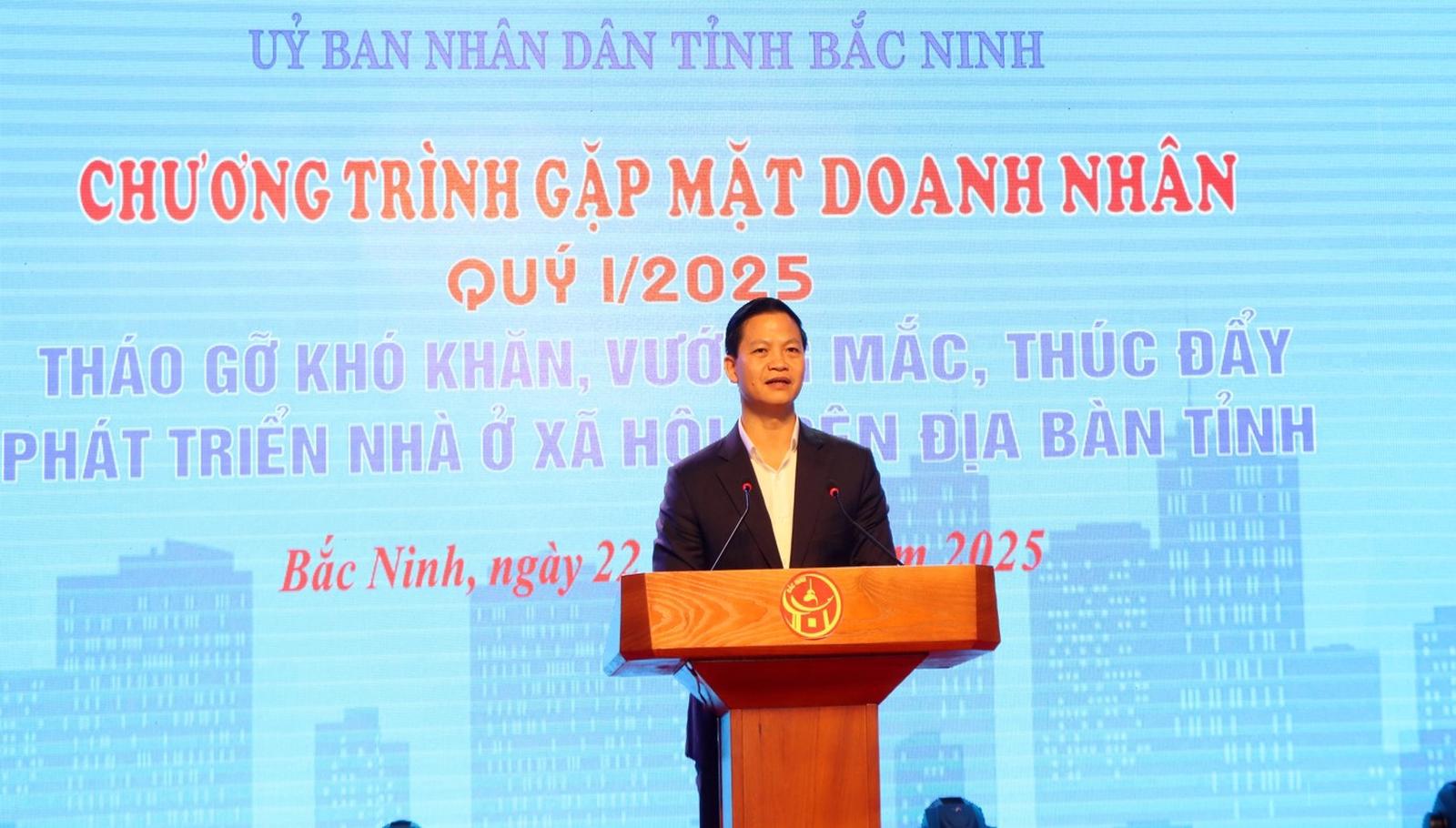 Chủ tịch UBND tỉnh Bắc Ninh Vương Quốc Tuấn chia sẻ, thời gian qua, tỉnh Bắc Ninh đã kịp thời tháo gỡ khó khăn, vướng mắc cho nhiều dự án, tạo thuận lợi cho các chủ đầu tư dự án và người lao động tiếp cận nhà ở xã hội, nhà ở công nhân.
