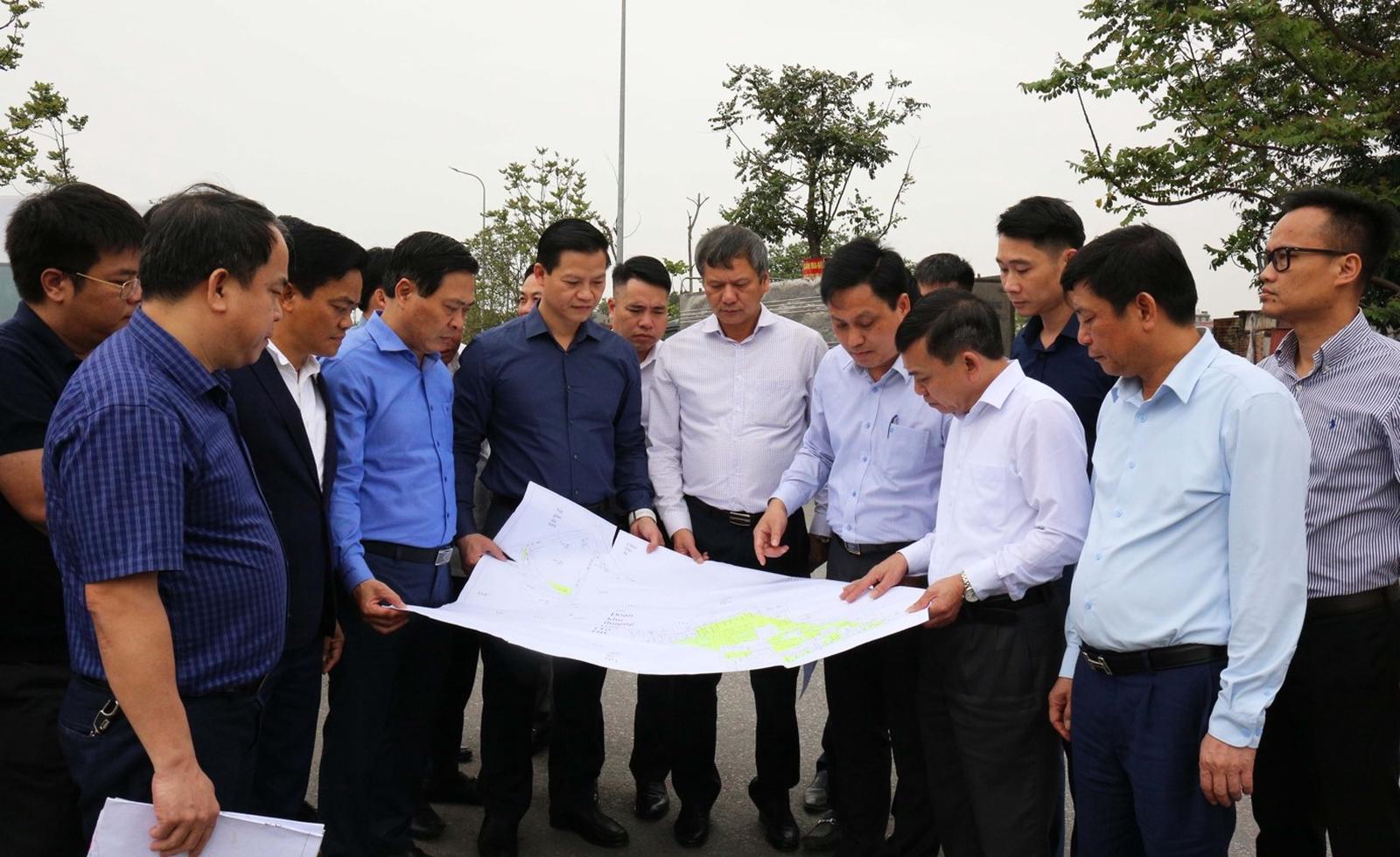 Chủ tịch UBND tỉnh Bắc Ninh Vương Quốc Tuấn kiểm tra tình hình GPMB dự án đầu tư xây dựng đường Vành đai 4 - Vùng thủ đô Hà Nội. Ảnh: HH