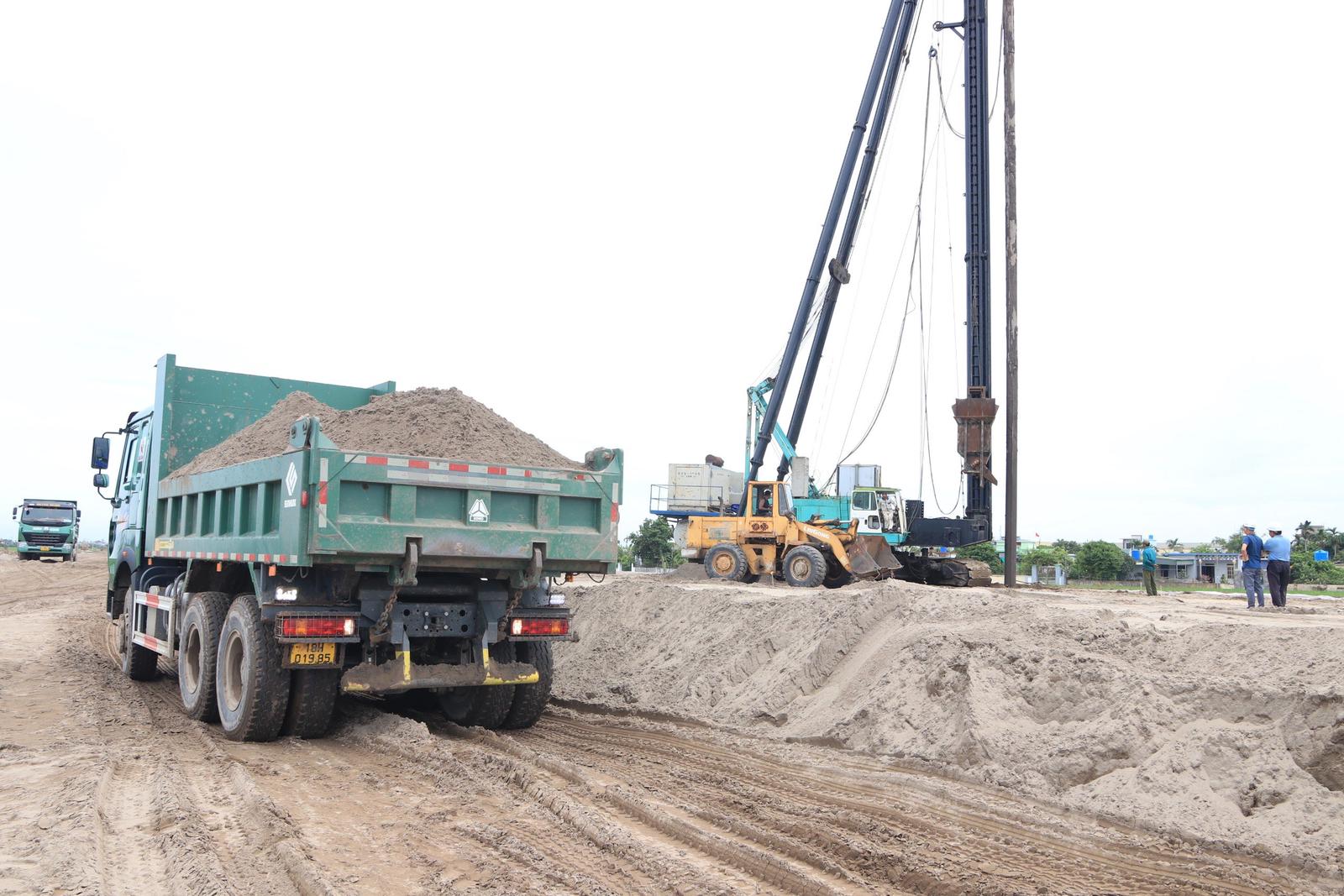 Thi công tuyến đường trục kết nối trong Khu Kinh tế Thái Bình. Ảnh: Trọng Tài