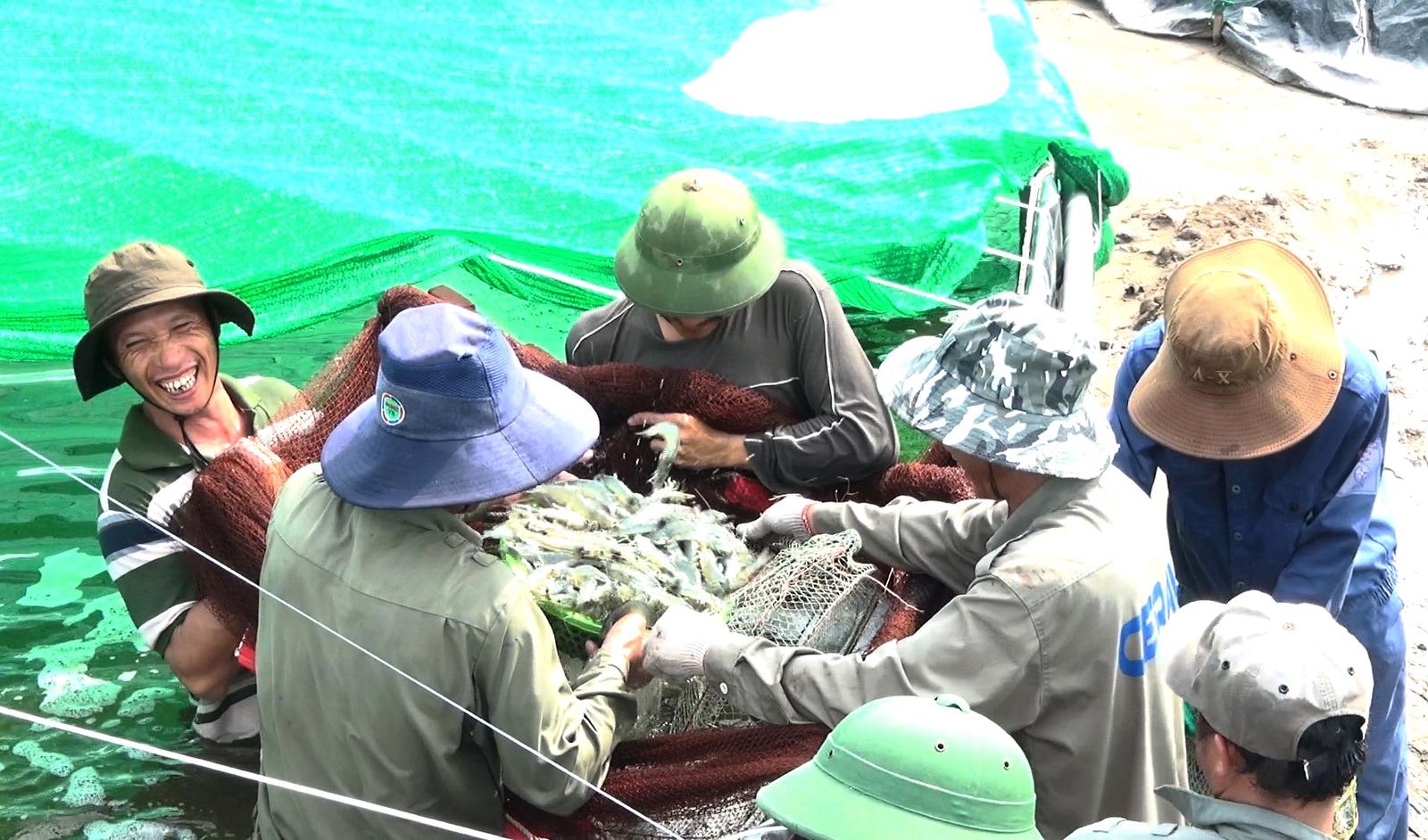 Nông dân Thái Bình trúng vụ tôm thẻ chân trắng. Ảnh: Trọng Tài