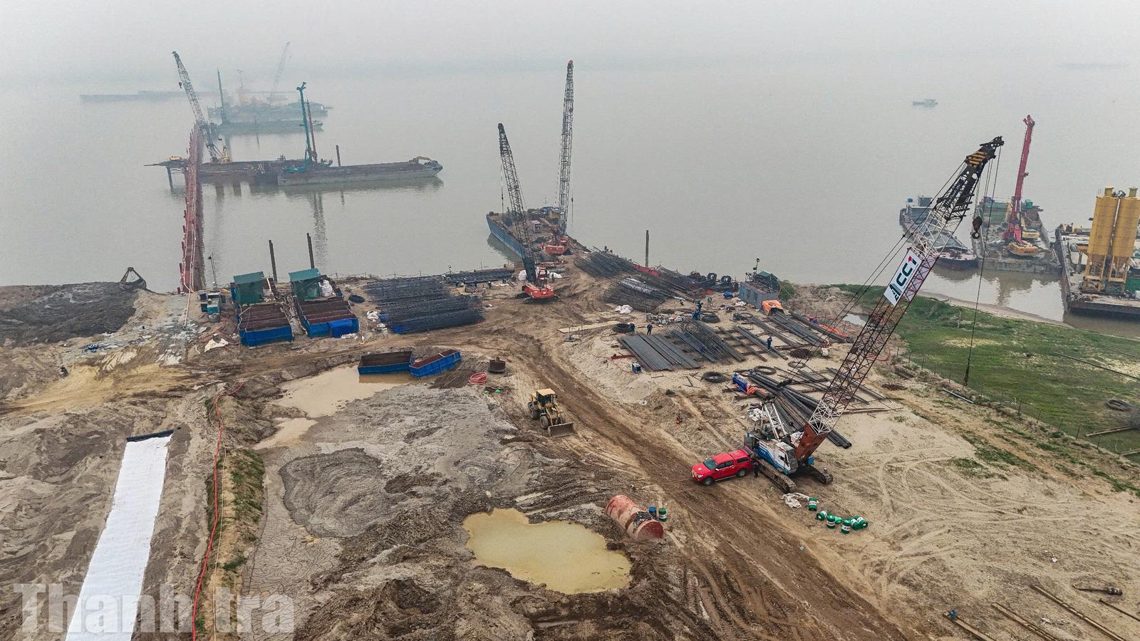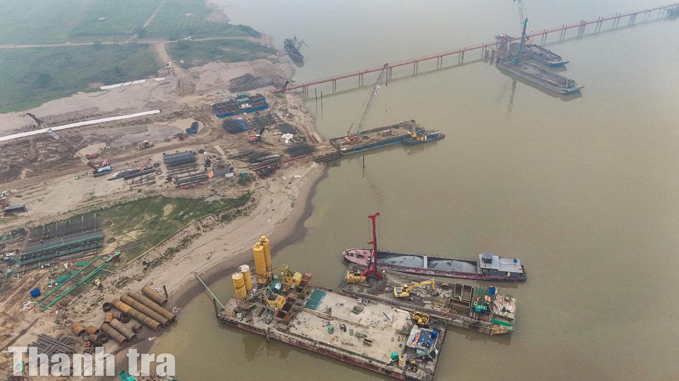 Không chỉ ở miền biên viễn, sắc Xuân công trường còn lan tỏa bên dòng sông Hồng. Những ngày này, trên khúc sông chảy qua địa phận xã Ô Diên và xã Mê Linh, nhịp thi công dự án cầu Hồng Hà diễn ra khẩn trương, tích cực. Dưới nắng Xuân trải dài mặt nước, máy khoan cọc nhồi, cần cẩu, dầm thép vận hành nhịp nhàng, tạo nên bức tranh lao động sôi động hai bên bờ.