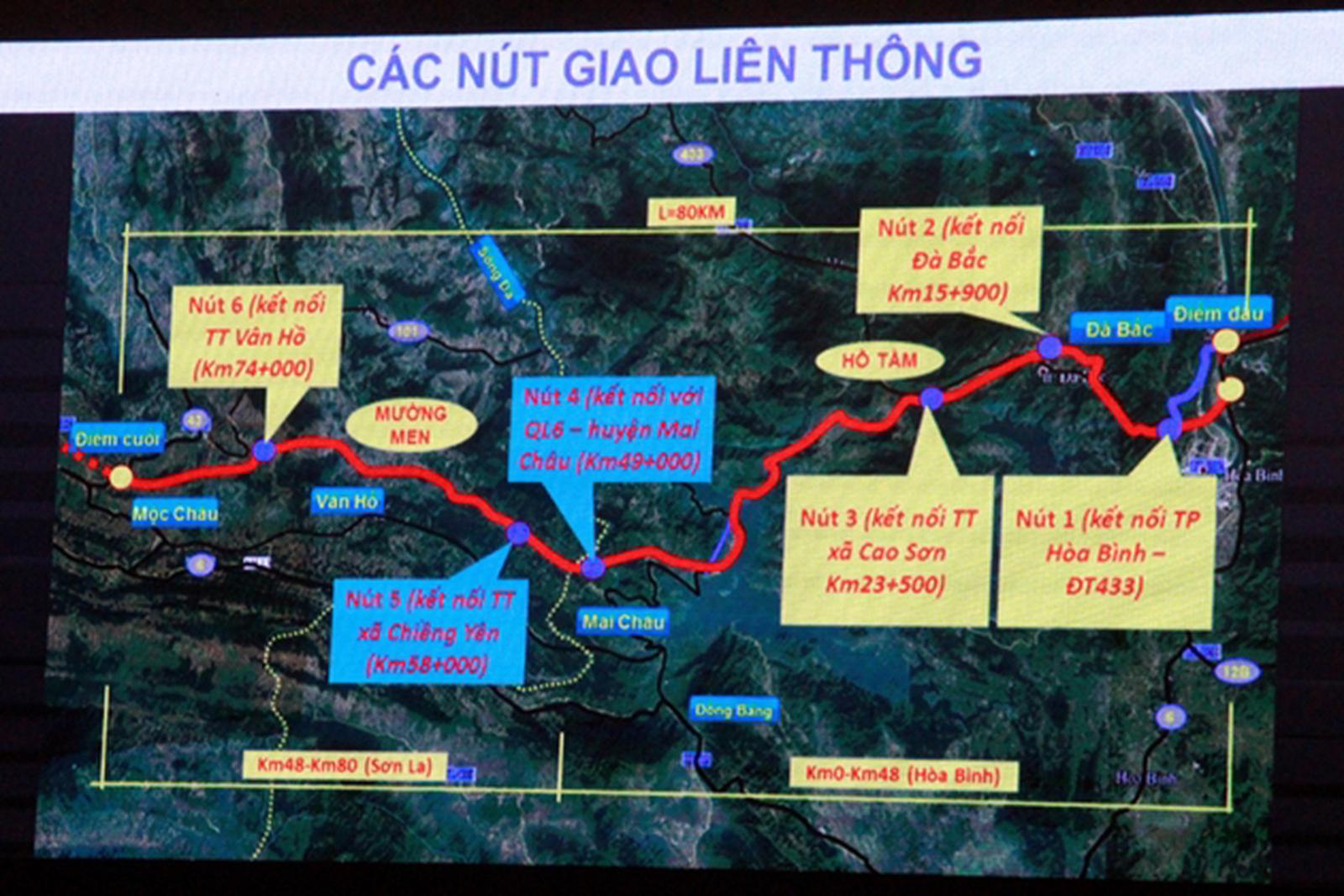 Dự án cao tốc Hòa Bình - Mộc Châu dài khoảng 85km, đi qua địa phận tỉnh Hòa Bình khoảng 49km, đoạn qua tỉnh Sơn La khoảng 36km. Dự án được phân kỳ đầu tư, giai đoạn 1 xây dựng quy mô 4 làn xe, nền đường rộng 17m, mặt đường rộng 14m, vận tốc thiết kế 80km/h. UBND tỉnh Sơn La được Thủ tướng Chính phủ giao nhiệm vụ là cơ quan Nhà nước có thẩm quyền thực hiện D.A.