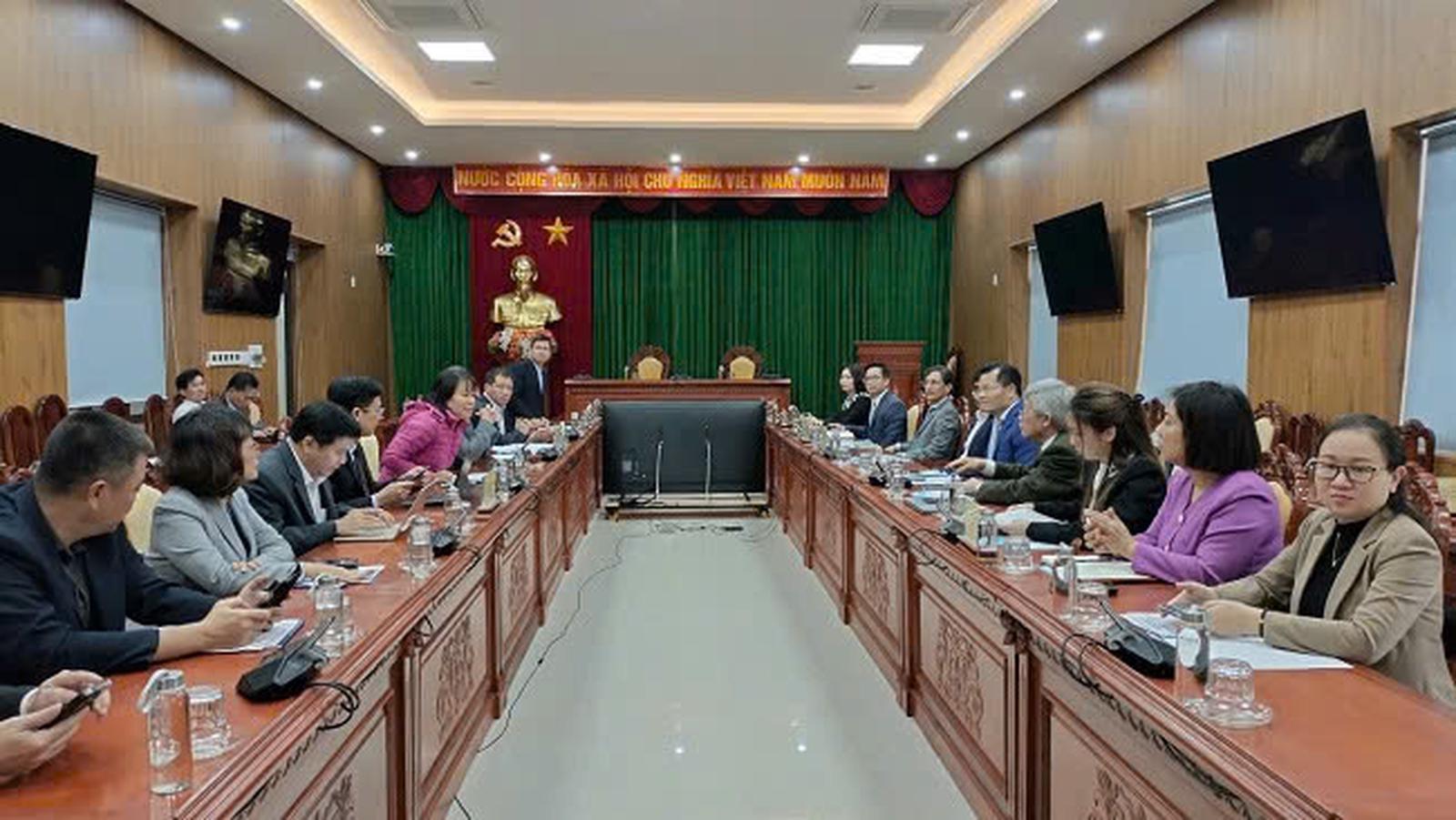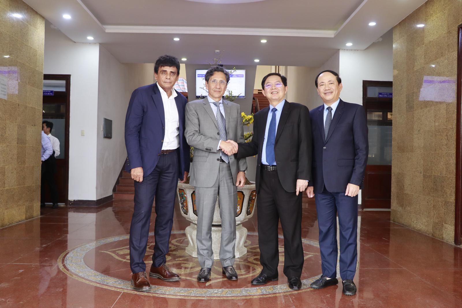 Bí thư Tỉnh uỷ Hồ Quốc Dũng, Chủ tịch UBND tỉnh Phạm Anh Tuấn chụp ảnh lưu niệm cùng Đoàn công tác. Ảnh: BT
