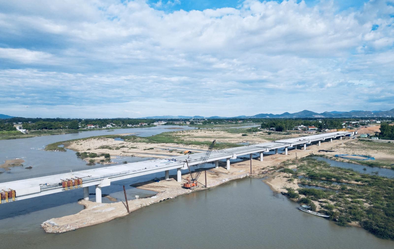 Cầu sông Kôn đi qua huyện Tây Sơn với 19 nhịp đã được hợp long. Ảnh: P.B