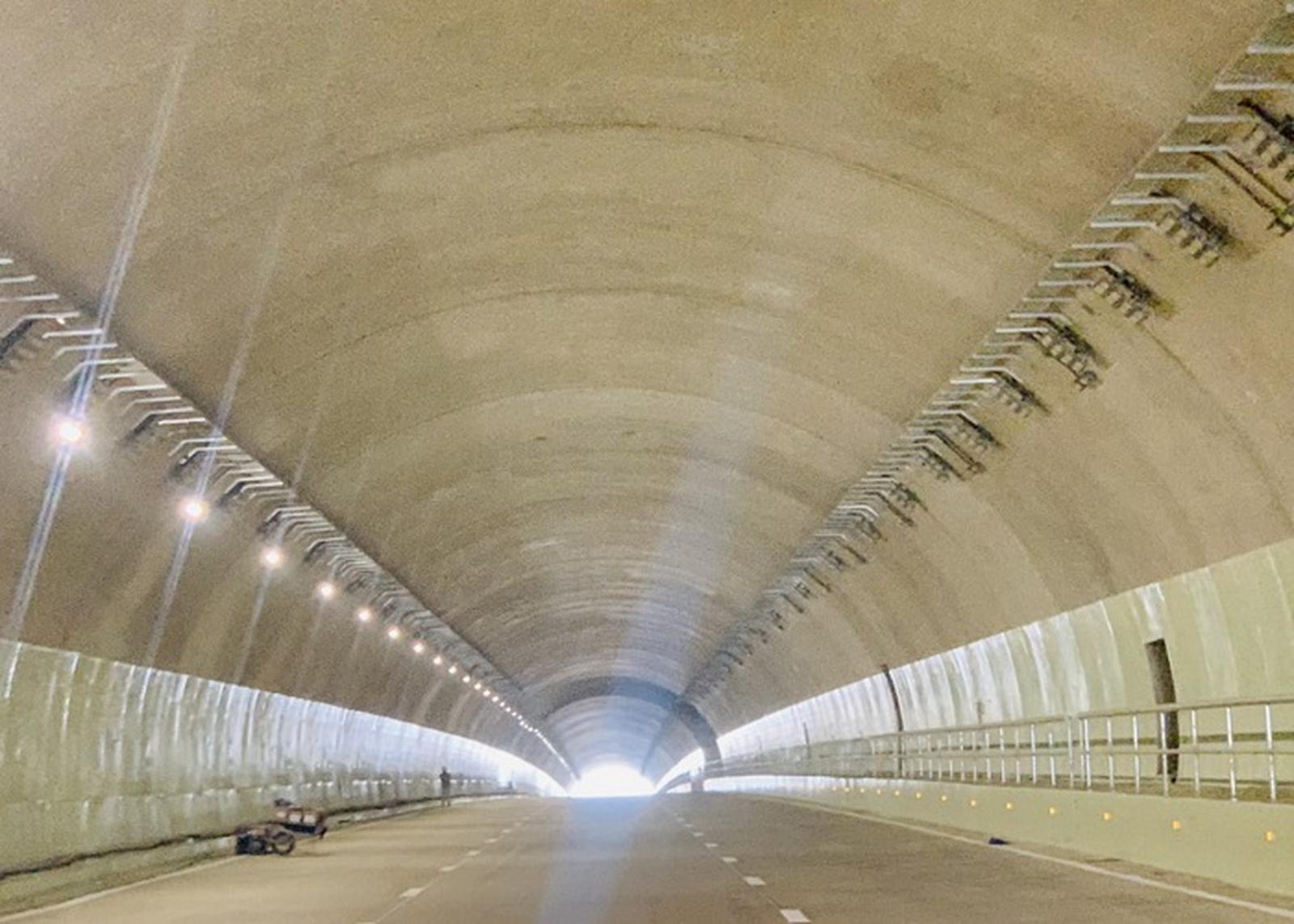 Hầm Thung Thi dài 680m trước ngày thông xe kỹ thuật. Ảnh: TQ