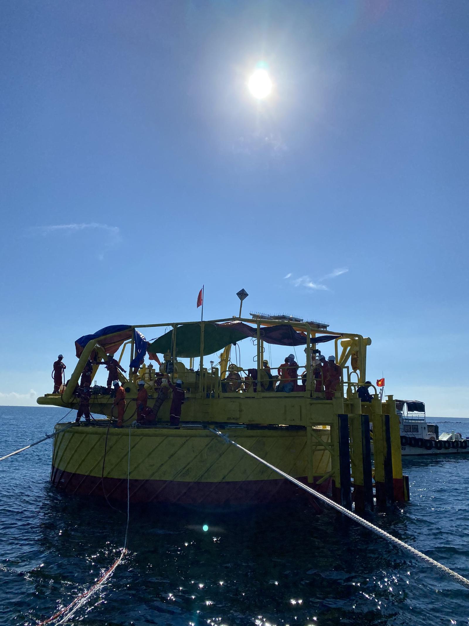 Sau đó, nhóm thi công đã thực hiện các bước kiểm tra về phần thiết bị điều khiển tự động và được theo dõi từ xa thông qua phần mềm giao diện tín hiệu telemetries monitoring, hệ thống điều khiển thủy lực thông qua bộ điều khiển trung tâm HPU đặt trên phao.