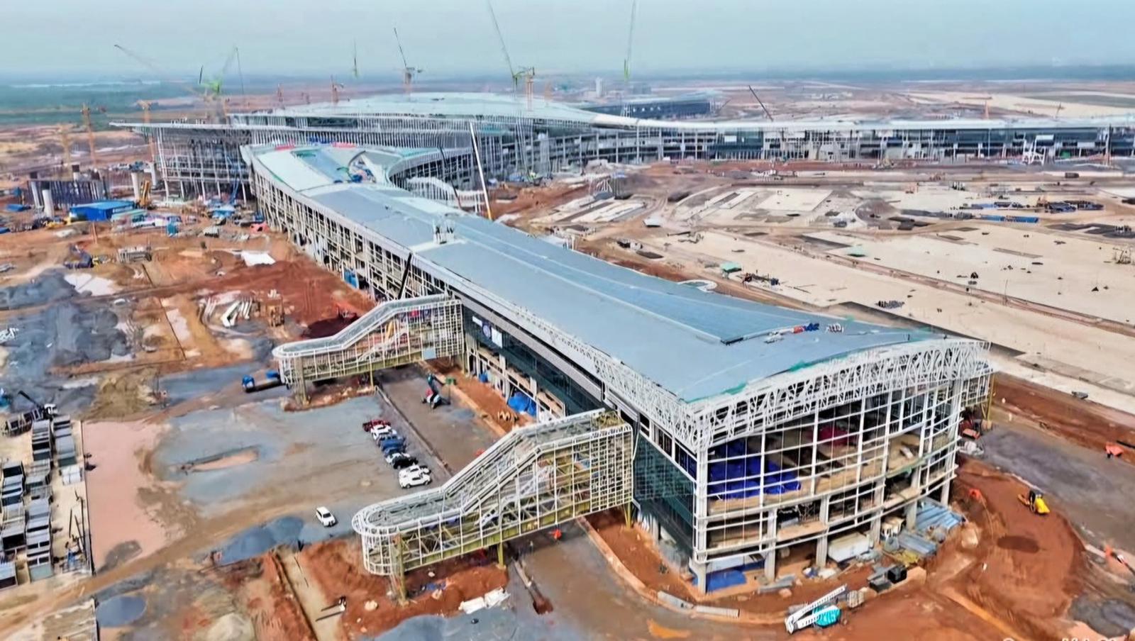 Một khi Cảng hàng không Quốc tế Long Thành đi vào khai thác, áp lực càng đè nặng giao thông vùng (ảnh LCT, công trường nhà ga Cảng HKQT Long Thành)