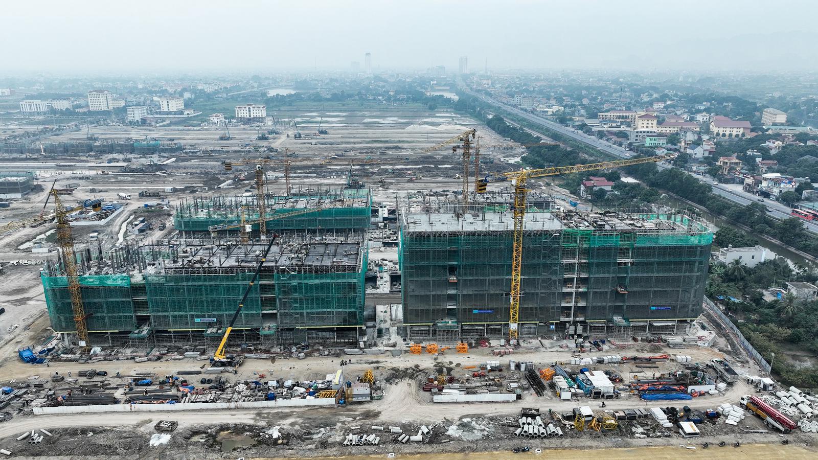 Đội ngũ kỹ sư, công nhân bám sát tiến độ, chất lượng và duy trì tăng ca tới 22h mỗi ngày. Tòa cao tầng đầu tiên đã đạt hơn 90% khối lượng công việc và chuẩn bị cất nóc vào ngày 28/12 tới đây.
