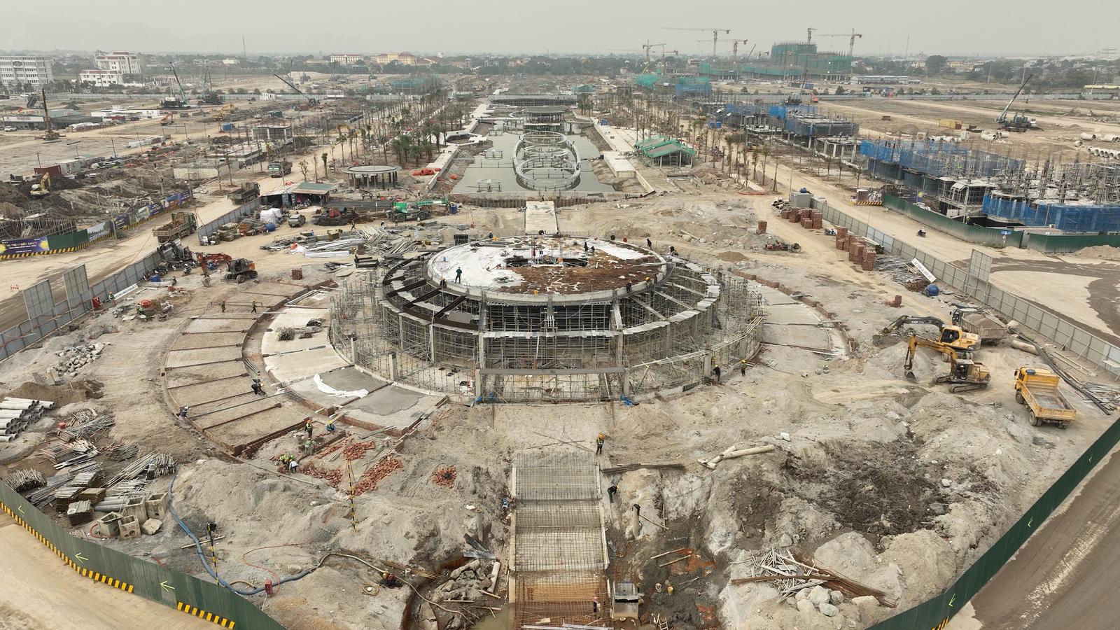 Đến công trường những ngày này, không khỏi ngỡ ngàng bởi màu xanh của nước, trời và cây xanh như hòa quyện đầy sinh khí. Hàng trăm kỹ sư, công nhân đang miệt mài làm việc ngày đêm, cẩn trọng từng chi tiết nhỏ nhất để đảm bảo chất lượng tối ưu.