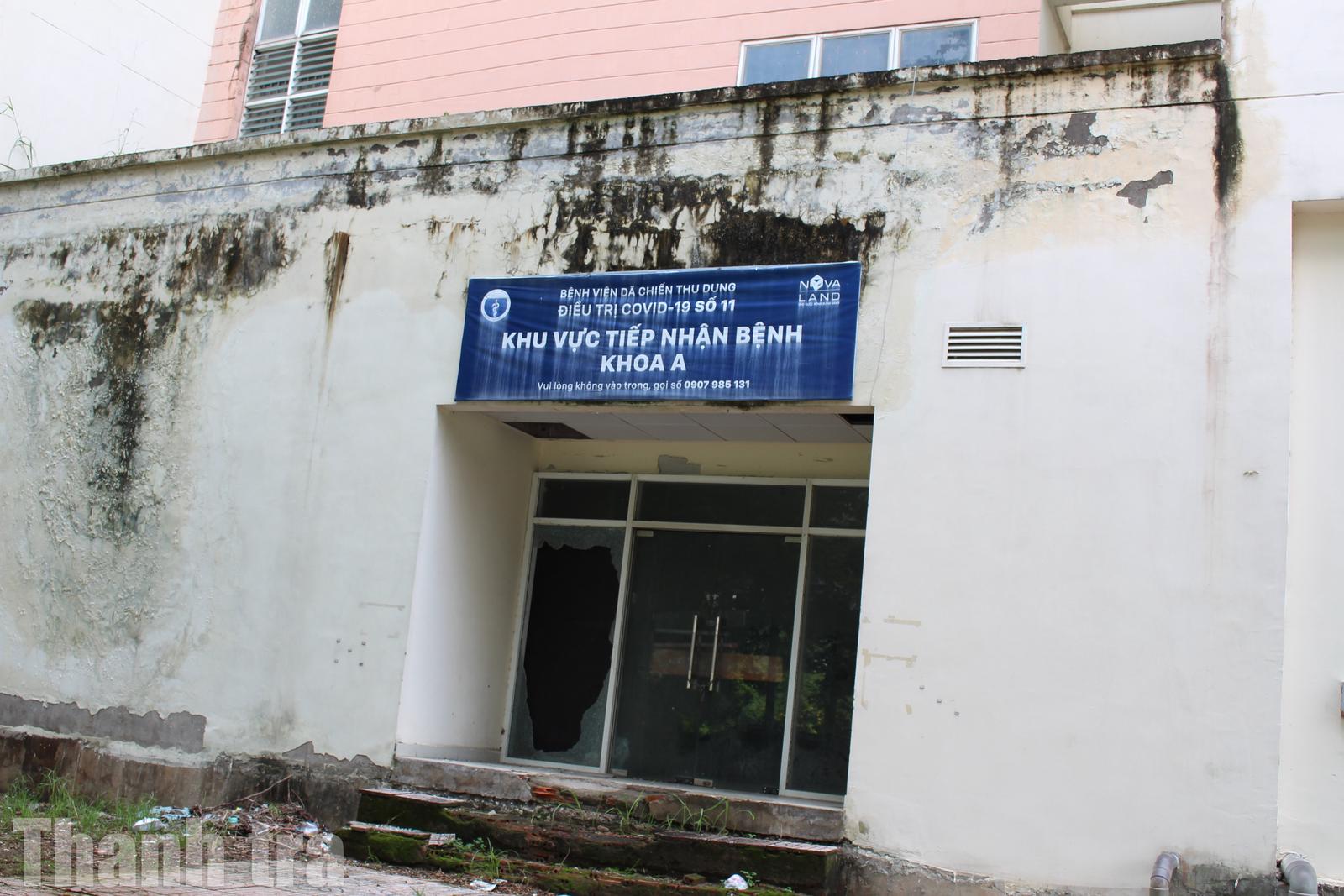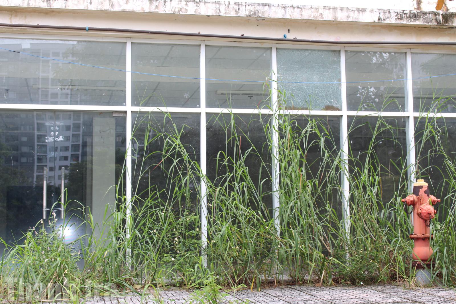 Sơn bong tróc, lối vào loang lổ, nhiều hạng mục xuống cấp dù chưa từng có người ở. Dấu ấn thời Covid-19 vẫn còn tồn tại. Ảnh Minh Nghĩa