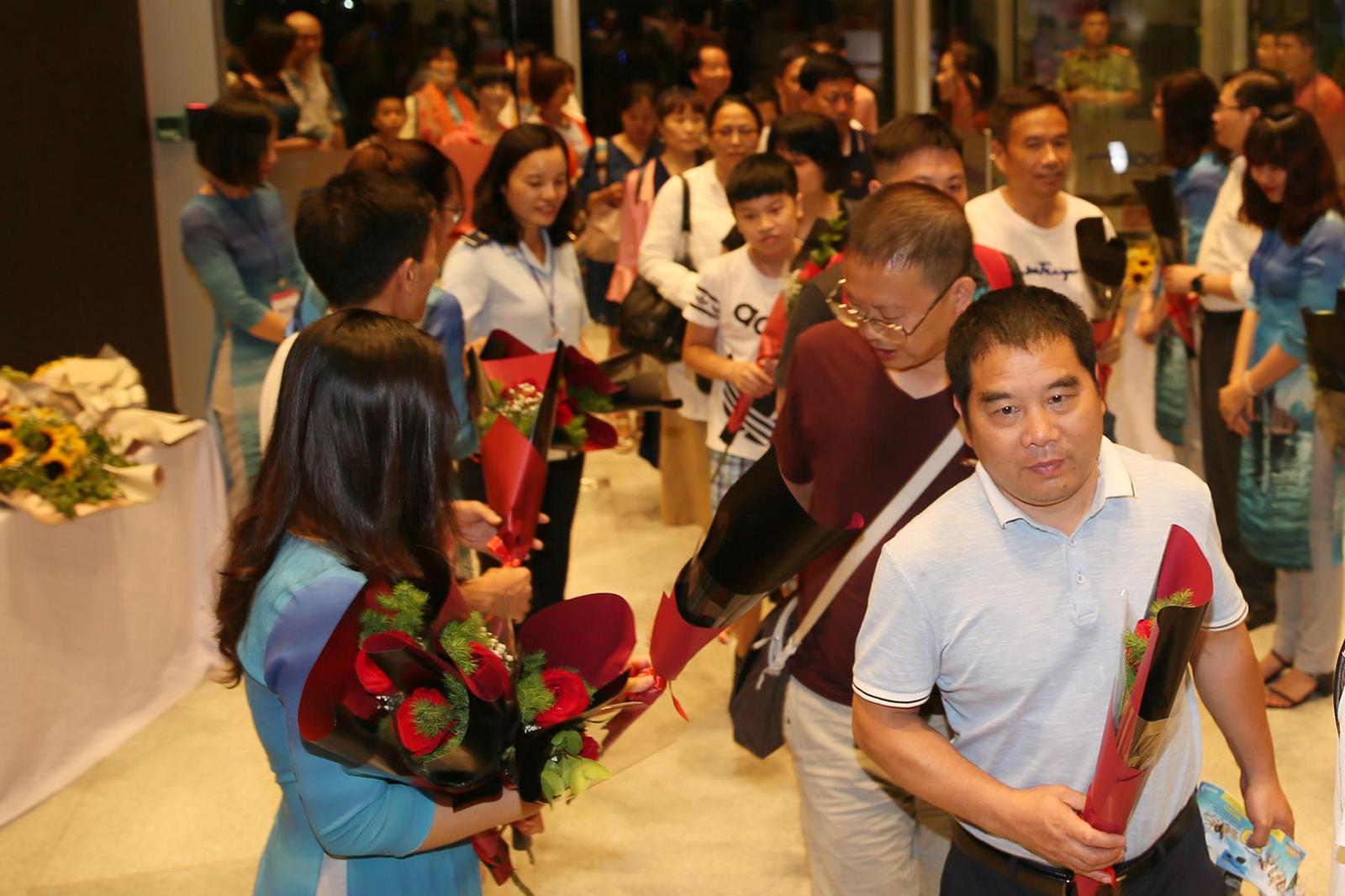 Để chào đón các vị khách quốc tế trên chuyến bay đầu tiên này, Cảng hàng không quốc tế Vân Đồn đã tổ chức nghi lễ trọng thị, với màn phun vòi rồng khi máy bay hạ cánh, tặng hoa chúc mừng những vị khách đầu tiên và phi hành đoàn đến với Vân Đồn. Du khách tới Quảng Ninh thông qua sân bay Vân Đồn sẽ tiếp tục được nhận các chính sách ưu đãi hấp dẫn như: bố trí xe buýt miễn phí; phát vé miễn phí tham quan vịnh Hạ Long, Yên Tử … Ngoài ra, Sân bay tiếp tục áp dụng chính sách ưu đãi giảm giá vào cửa tổ hợp Sun World Halong Complex khi các hành khách đến vui chơi tại đây.