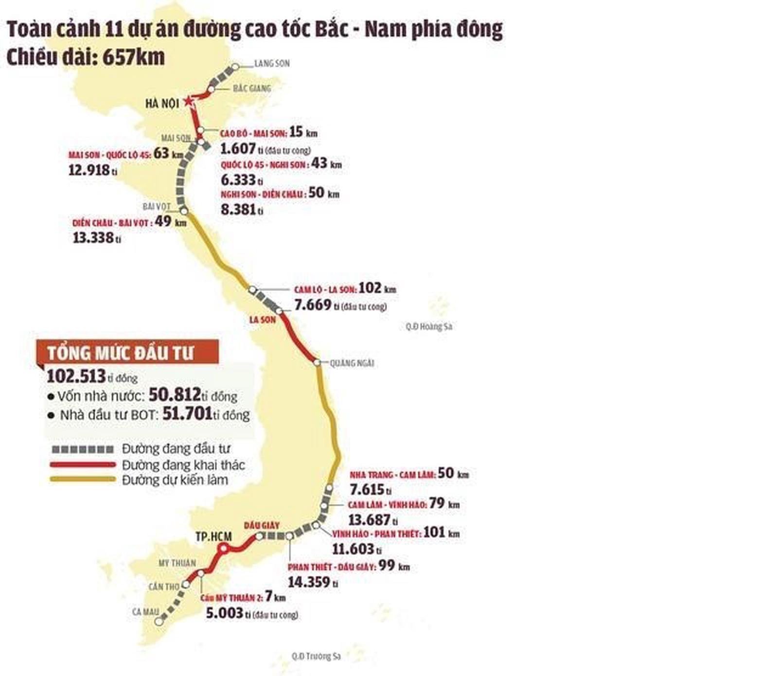 Bản đồ quy hoạch đường cao tốc Bắc Nam phía Đông