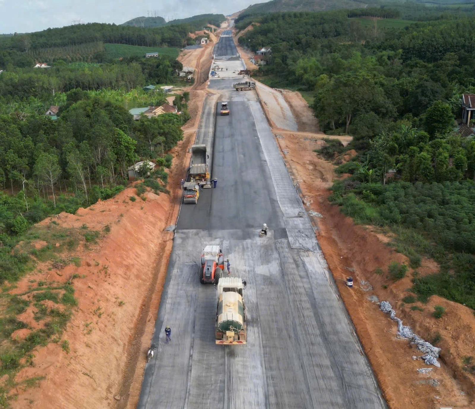 Cấp phối đá dăm loại I tuyến chính đạt 78,11%; nút giao đạt 26,18%; cấp phối đá dăm loại 2 đạt 54,15%; cấp phối đá dăm gia cố xi măng đạt 65,17%. Bê tông nhựa chặt 16 dày 6cm tuyến chính đạt 17,1%; bê tông nhựa chặt 19 dày 6cm, tuyến chính đạt 42,36%; các nút giao đạt 7,5%; hỗn hợp nhựa bán rỗng 25 dày 10cm đạt 54%.