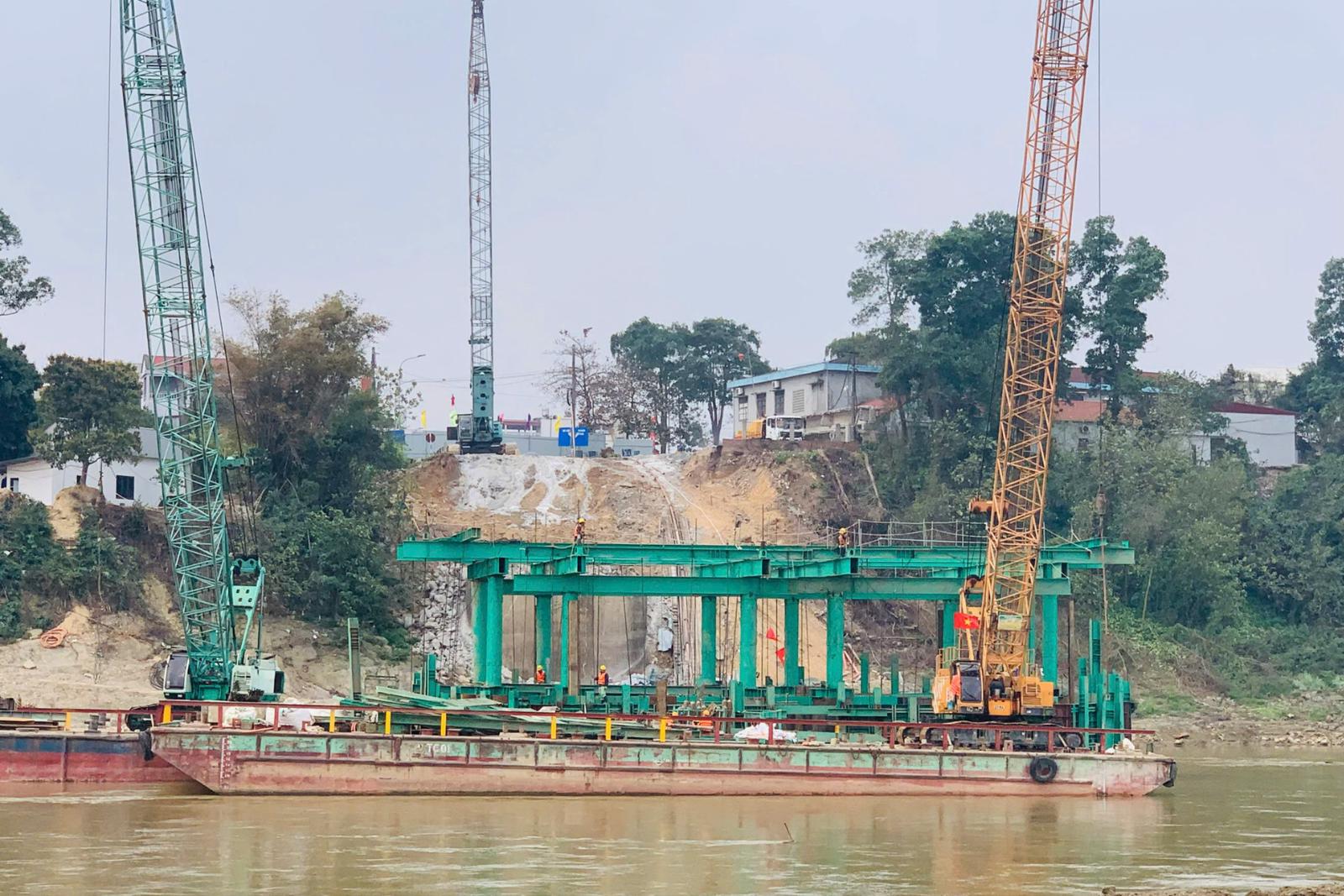 Dự án cầu Phong Châu mới đang được gấp rút thi công.