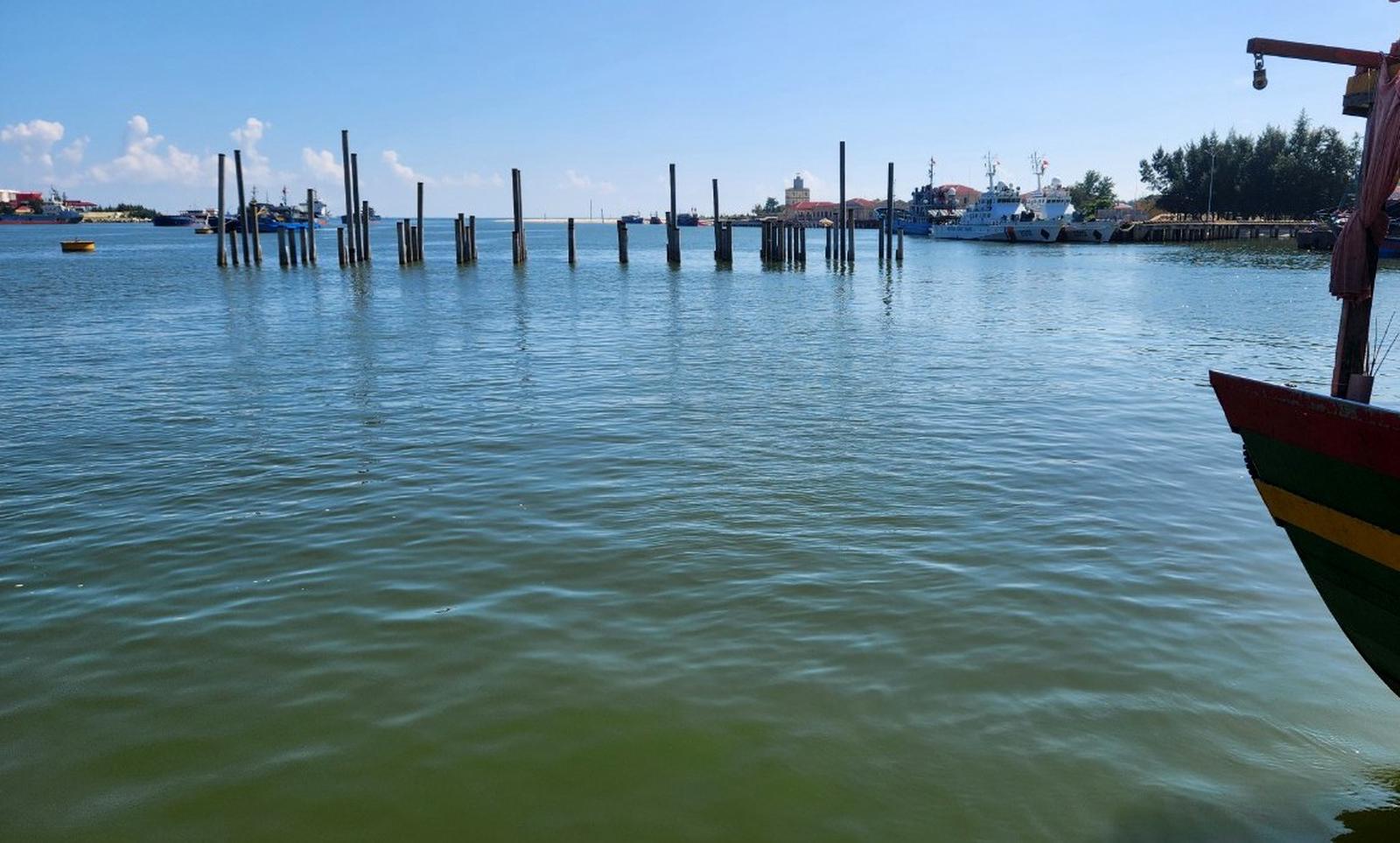 Việc thi công dang dở đã ảnh hưởng lớn đến hoạt động của các tàu cá khi vào cảng cá Nam Cửa Việt cũng như hoạt động chống khai thác IUU. Ảnh: Minh Tân
