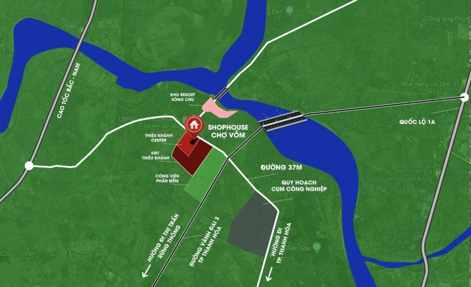 Chợ Vồm Thiệu Khánh là nơi giao thoa của nhiều tuyến giao thông huyết mạch, shophouse xây dựng ở chọ có khả năng sinh lời cao
