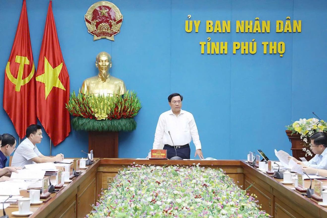 Chủ tịch UBND tỉnh Phú Thọ Trần Duy Đông chủ trì họp Tổ công tác về giải quyết các vấn đề khó khăn, vướng mắc các dự án tồn đọng của địa phương. Ảnh: Cổng TTĐT tỉnh Phú Thọ