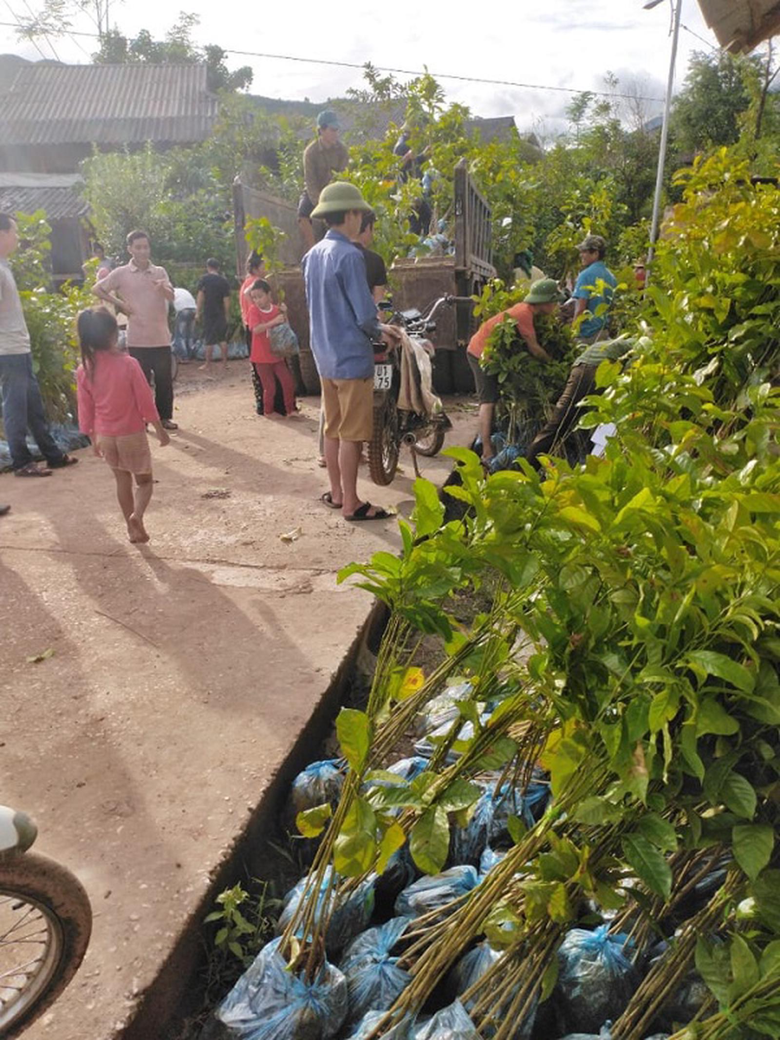 Người dân Tân Uyên phấn khởi khi nhận giống cây. Ảnh: BB