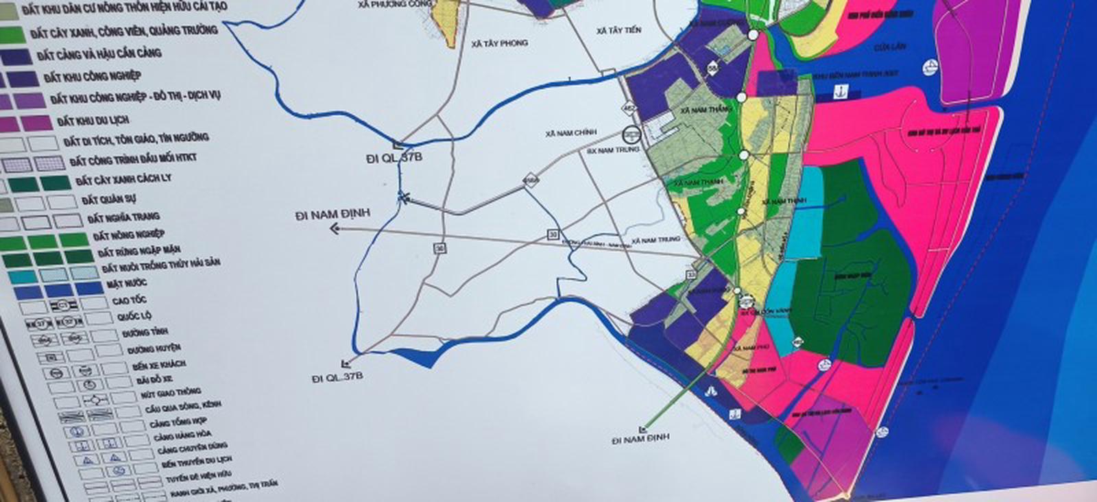 Một phần bản đồ quy hoạch phân khu Khu kinh tế Thái Bình đoạn ven biển huyện Tiền Hải. Ảnh: PV