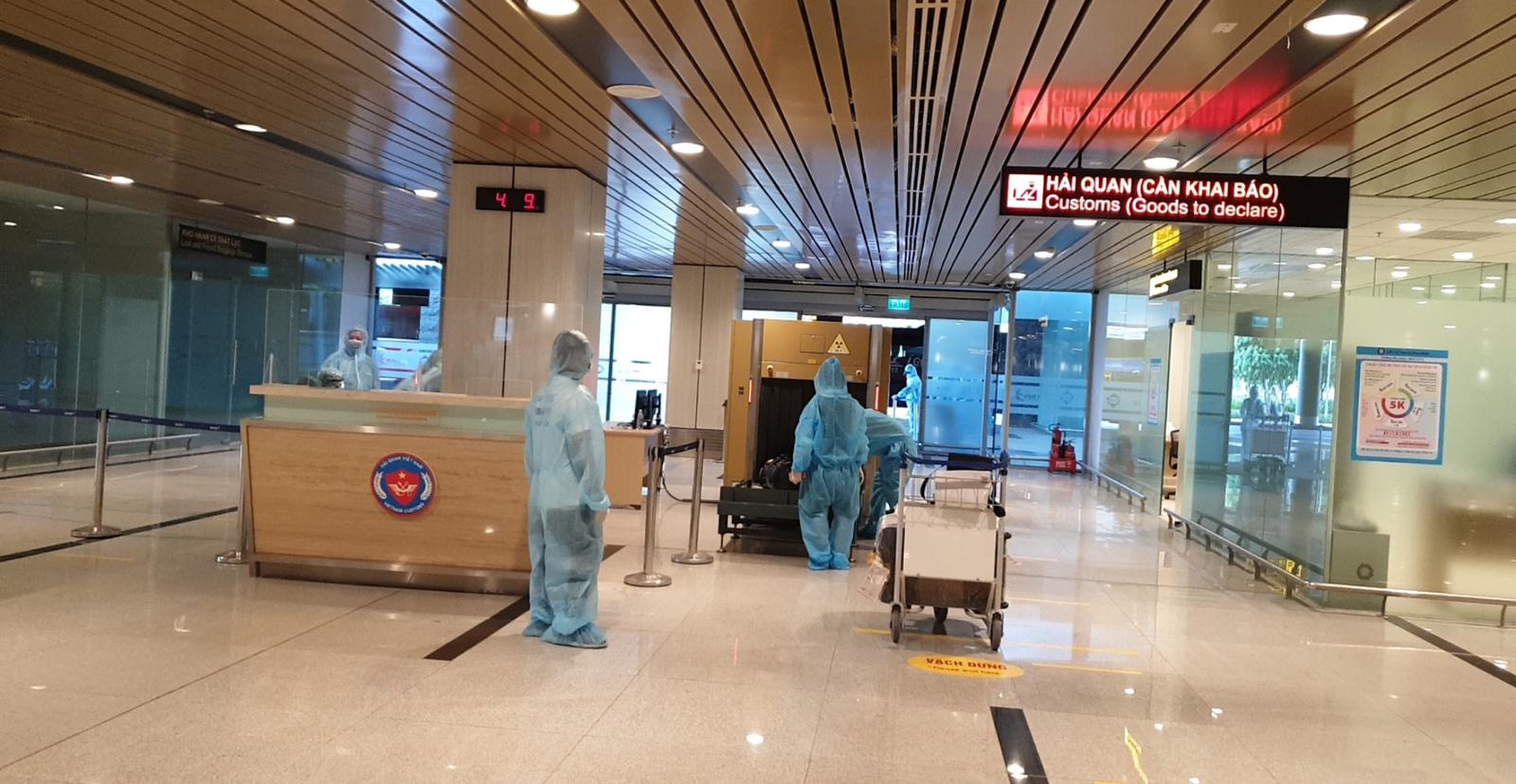 Hành khách hạ cánh xuống sân bay được đo thân nhiệt, khai báo y tế bắt buộc và làm thủ tục nhập cảnh, hải quan tại khu vực riêng biệt. Hành khách cũng được hướng dẫn đeo khẩu trang, giữ khoảng cách an toàn. Hành lý xách tay và hành lý ký gửi đều được khử trùng bằng chất khử trùng chuyên dụng.