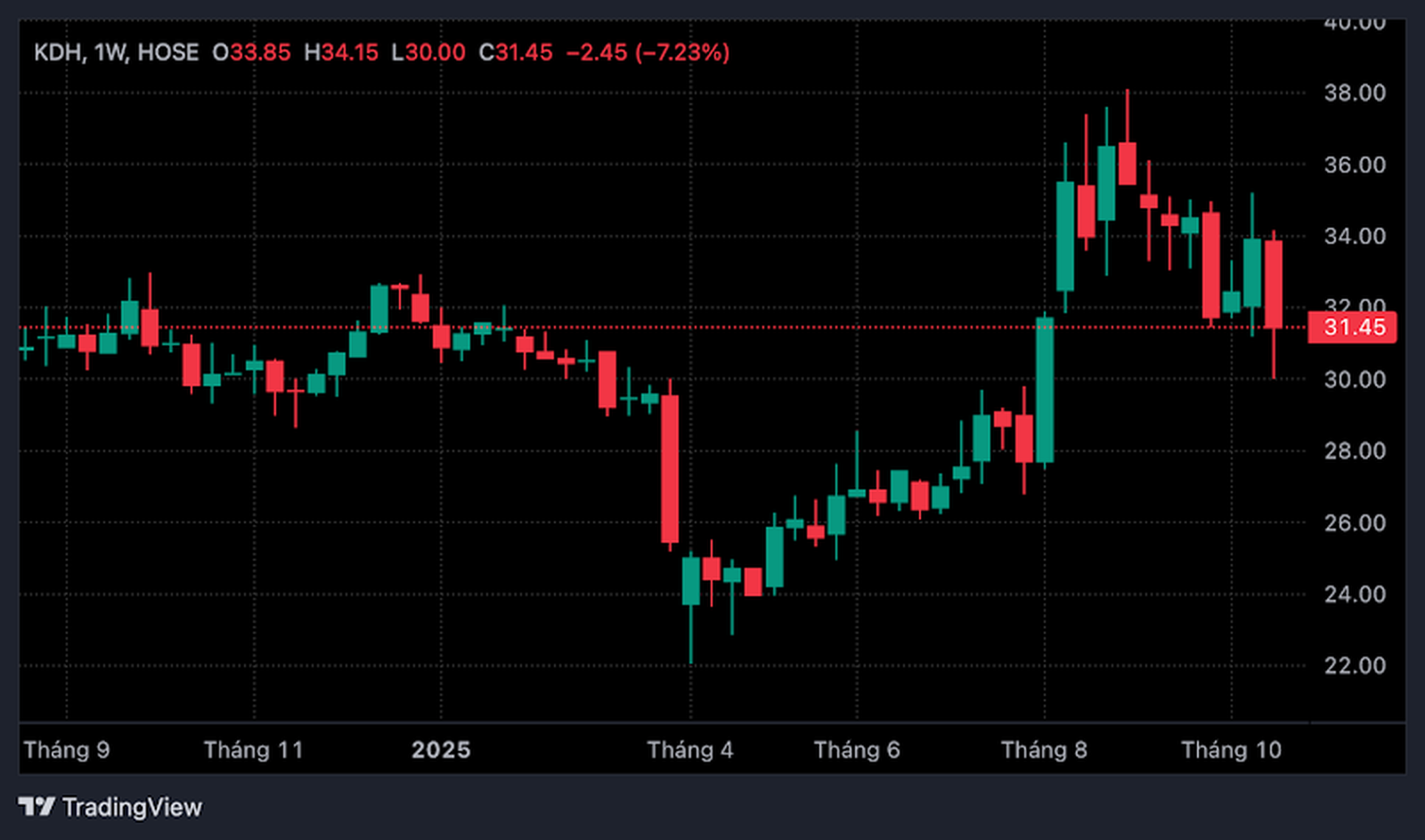 Với danh mục dự án tập trung tại TP.HCM và cơ cấu tài chính lành mạnh, KDH tiếp tục thu hút sự quan tâm từ các nhà đầu tư tổ chức. Khối lượng giao dịch bình quân tuần qua đạt gần 10 triệu cổ phiếu/ngày – một con số cho thấy dòng tiền lớn vẫn đang theo dõi chặt chẽ cổ phiếu này.