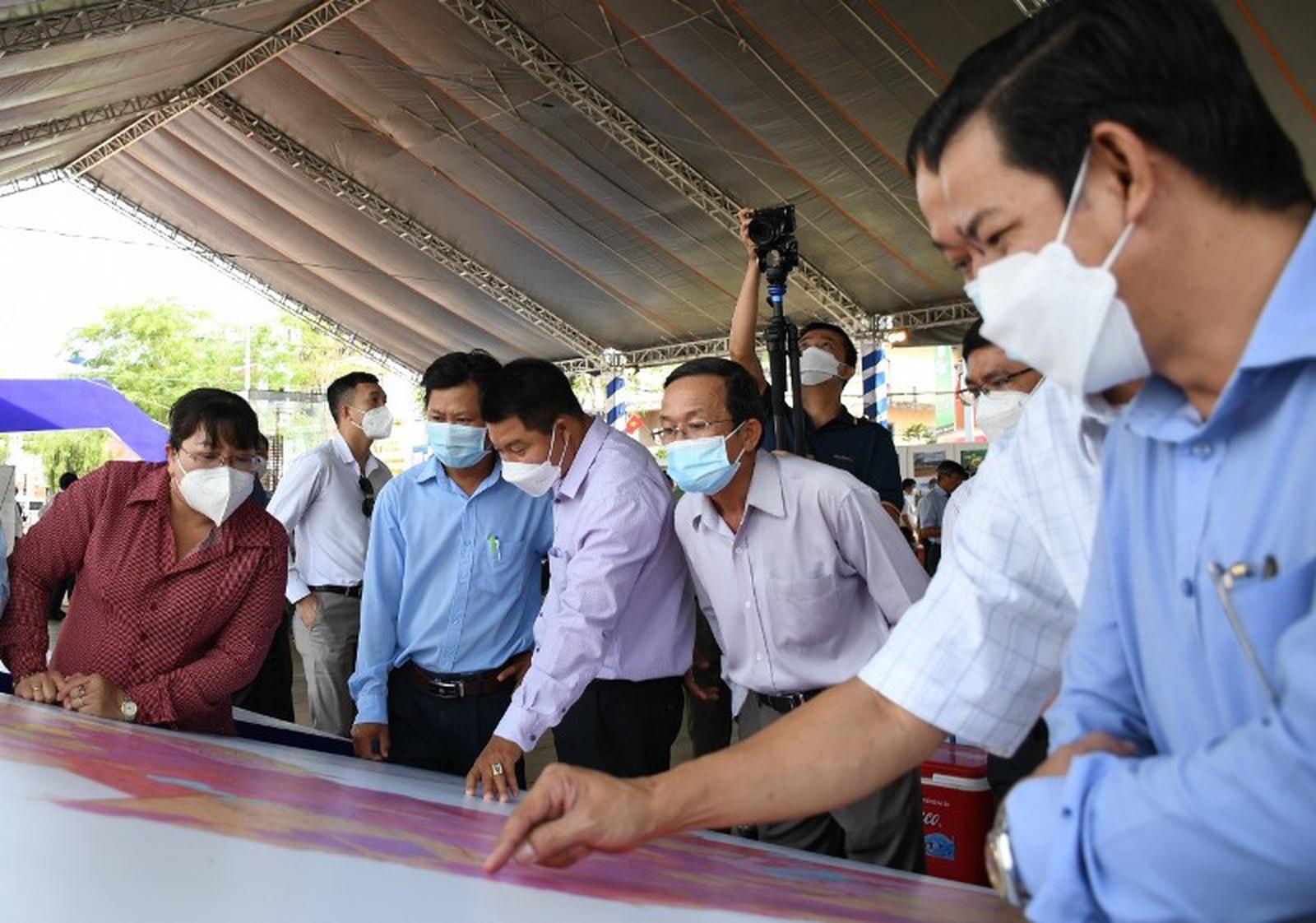 Khách dự lễ công bố xem bản đồ quy hoạch mới của TP Long Khánh. Ảnh: Nguyên Dũng