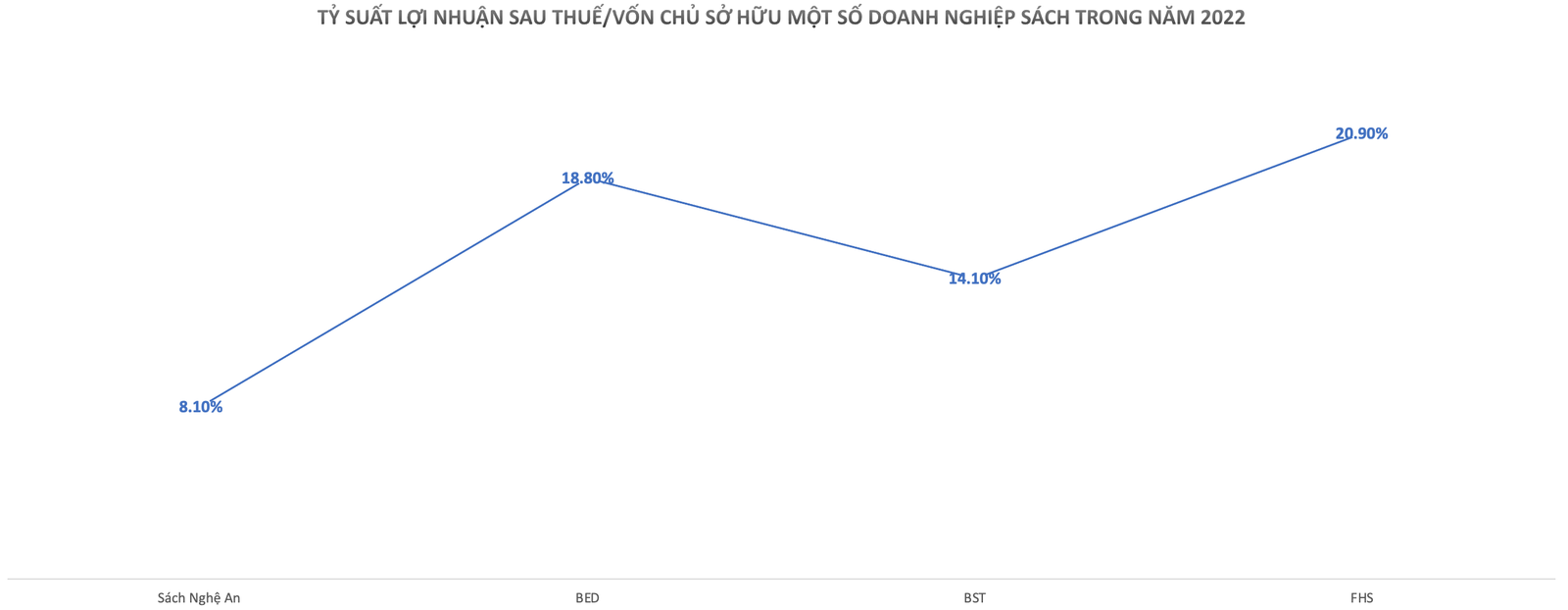 Tỷ suất lợi nhuận sau thuế/vốn chủ sở hữu năm 2022 của Sách Nghệ An kém xa các doanh nghiệp cùng ngành. Biểu đồ: Quang Dân