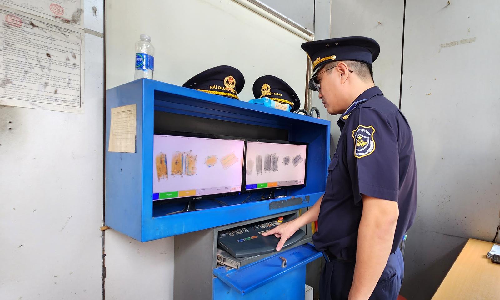 Lực lượng Hải quan Quảng Trị kiểm tra hàng hóa bằng máy soi chiếu tại Cửa khẩu Quốc tế Lao Bảo. Ảnh: Minh Tân