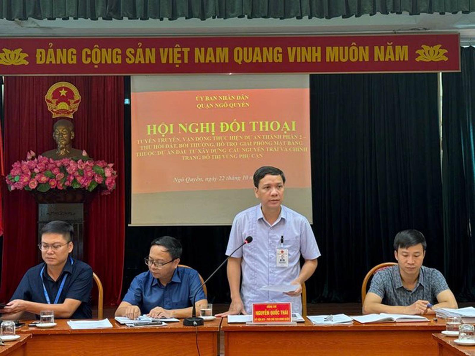 Lãnh đạo quận Ngô Quyền đối thoại với các tổ chức, cá nhân có đất thu hồi phục vụ dự án. Ảnh: ĐT
