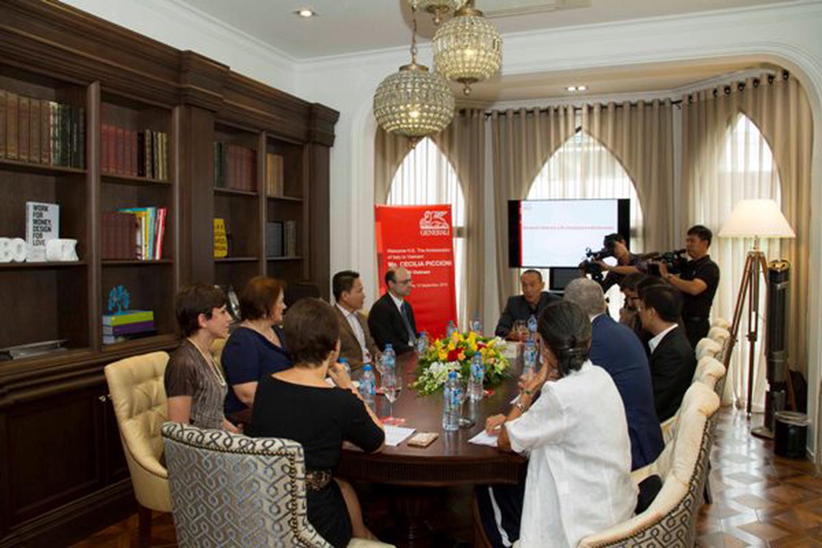 (Thanh tra) - Nhân kỷ niệm một năm thành lập Văn phòng Tổng Lãnh sự quán Cộng hòa Ý tại TP. Hồ Chí Minh, bà Cecilia Piccioni, Đại sứ Cộng hòa Ý tại Việt Nam cùng Đoàn đại biểu Đại sứ Quán Ý, Tổng Lãnh sứ quán Ý tại TP. Hồ Chí Minh và Chủ tịch Phòng Thương mại Ý vừa đến thăm và làm việc với cán bộ, nhân viên Công ty bảo hiểm nhân thọ Generali Việt Nam.