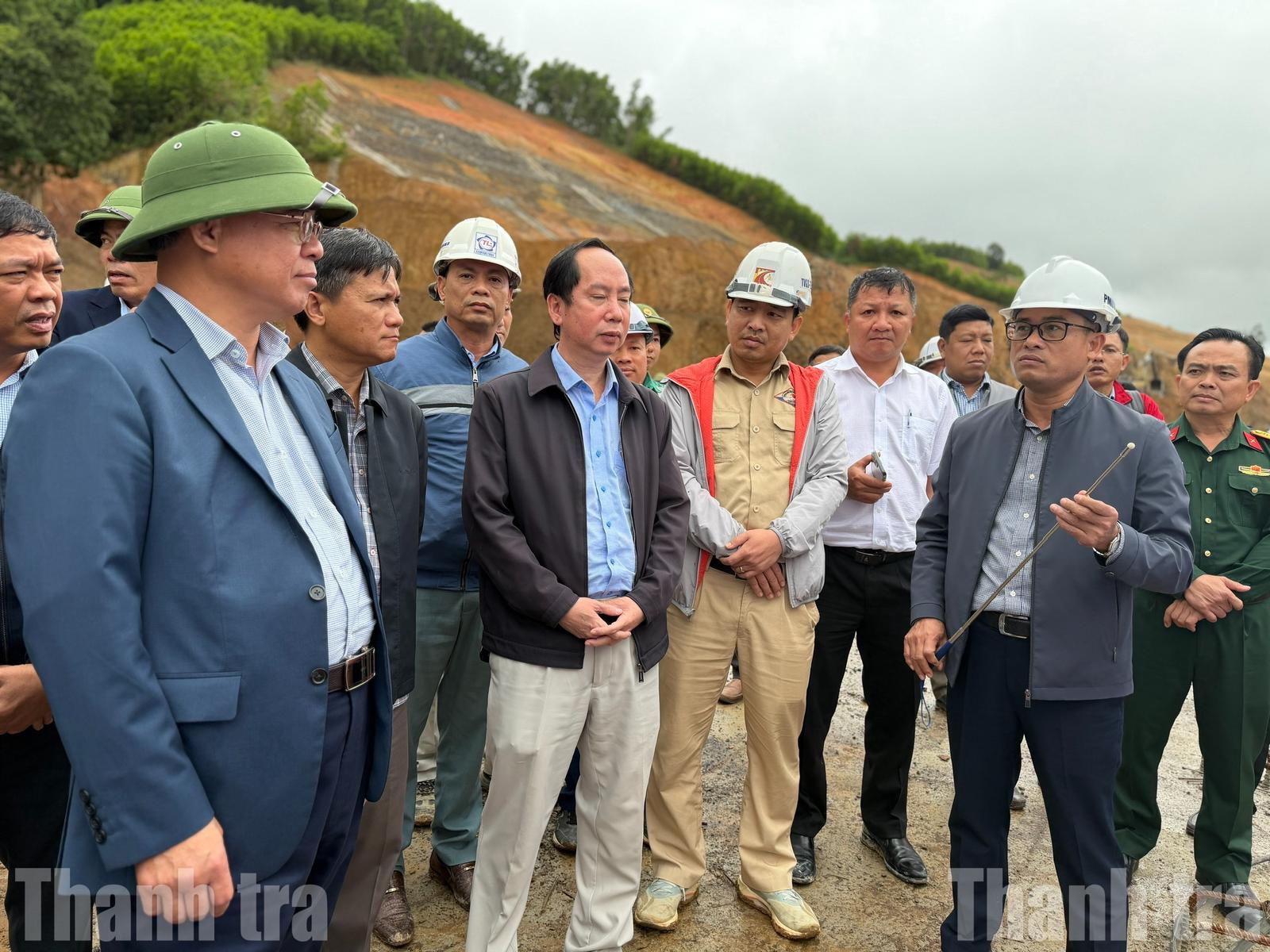 Phó Chủ tịch UBND tỉnh Đắk Lắk Trương Công Thái trực tiếp kiểm tra tiến độ thi công Dự án thành phần 2 cao tốc Khánh Hòa – Buôn Ma Thuột. Ảnh: NG