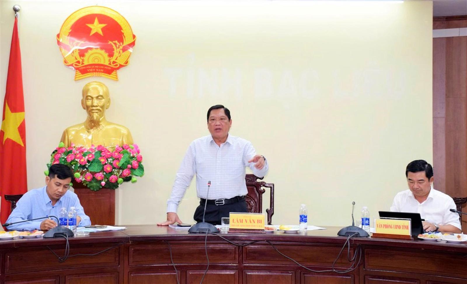 Phó Chủ tịch UBND tỉnh Lâm Văn Bi phát biểu chỉ đạo tại buổi làm việc với các ban quản lý dự án của tỉnh và những đơn vị có liên quan vào chiều ngày 22/7/2025. Ảnh: Cổng TTĐT tỉnh Cà Mau