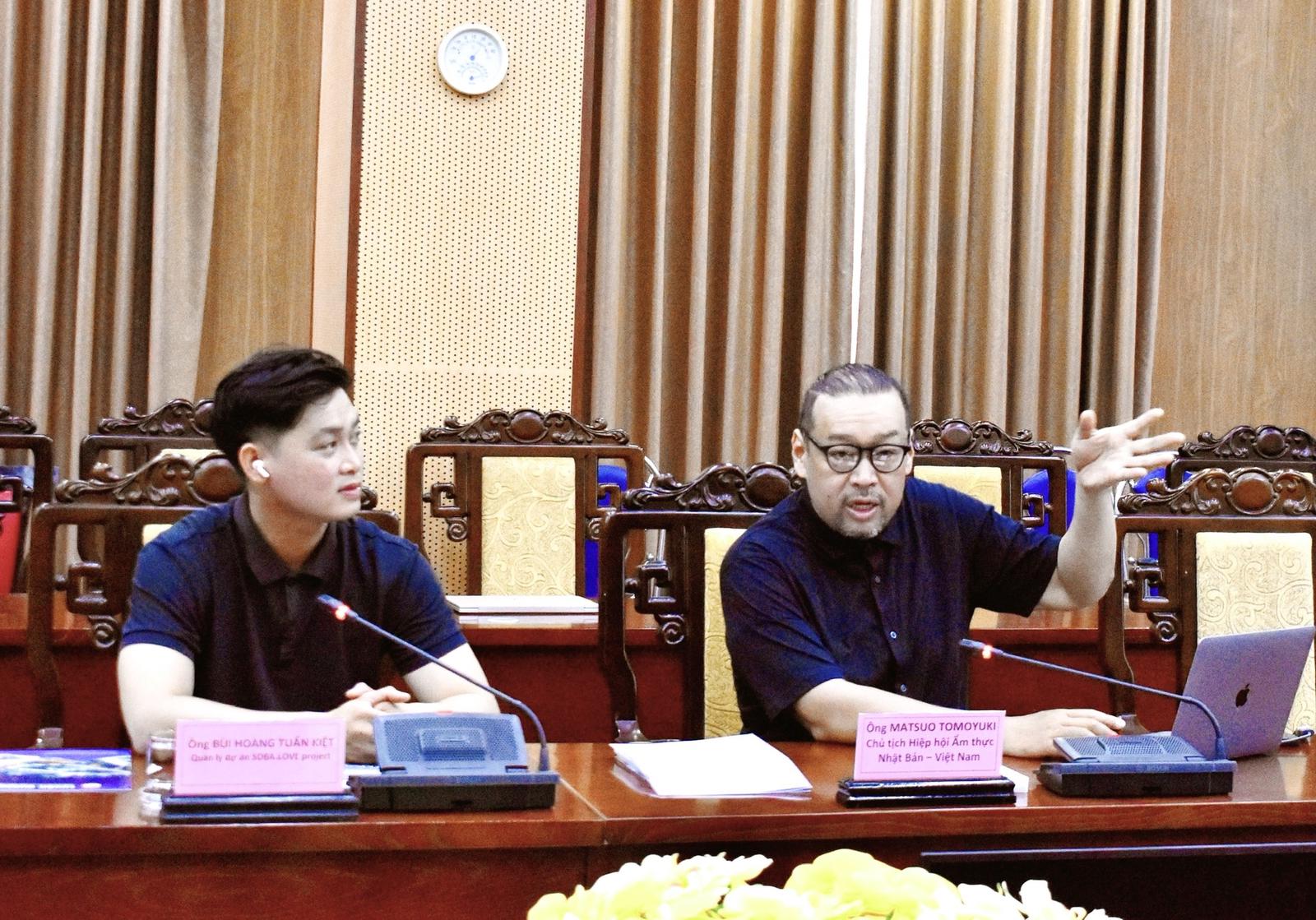 Ông Matsuo Tomoyuki, Chủ tịch Hiệp hội Ẩm thực Nhật Bản - Việt Nam phát biểu ý kiến tại buổi làm việc. Ảnh: ND
