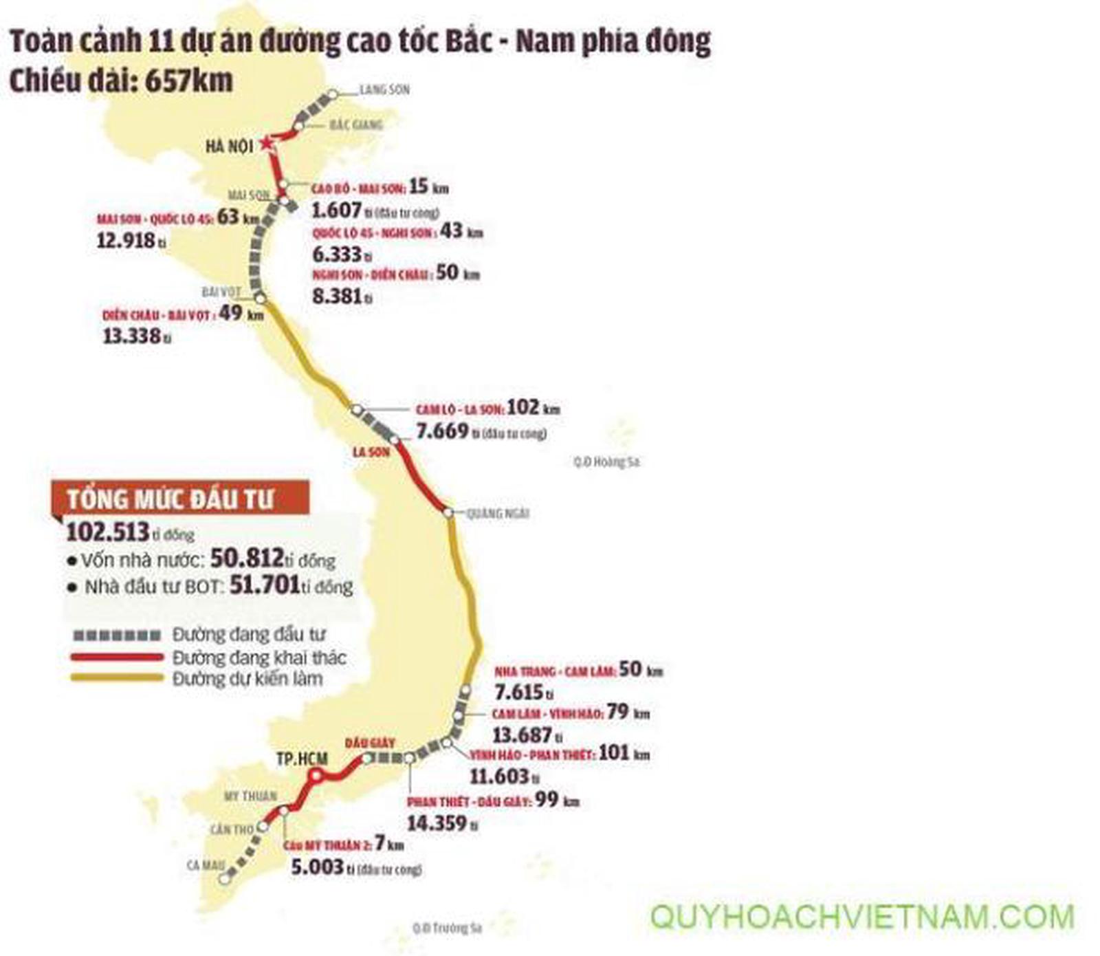 Bản đồ Quy hoạch đường bộ cao tốc Bắc - Nam phía Đông. Ảnh: TQ