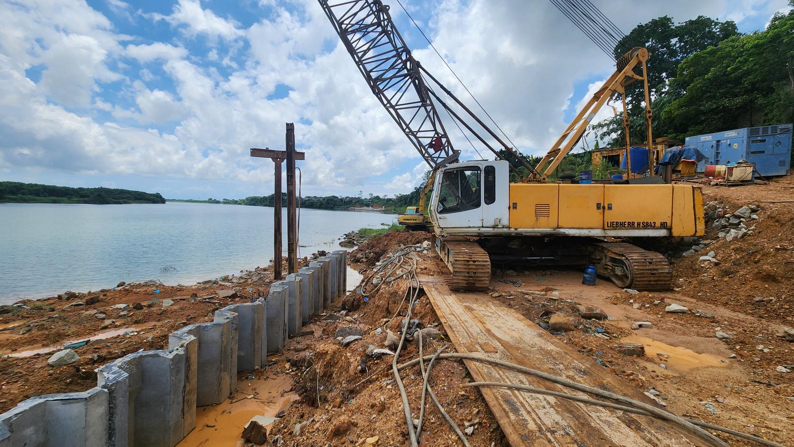 Chủ đầu tư cho rằng do điều kiện thi công khó khăn, mực nước thượng lưu dâng cao do ảnh hưởng của mưa lũ, thời gian thi công ngắn nên nhà thầu thi công chỉ mới tiến hành đổ đất cấp phối làm đường tạm phục vụ thi công, san gạt mặt bằng, tập kết cọc cừ bê tông cốt thép để chuẩn bị thi công.