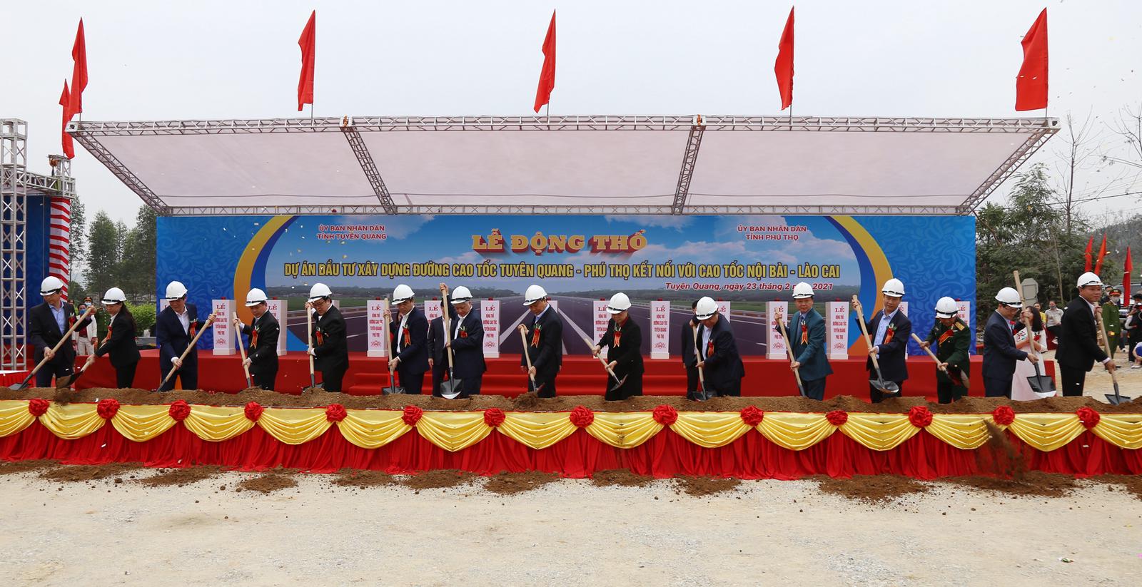(Thanh tra) - Ngày 23/2, tại TP Tuyên Quang, UBND tỉnh Tuyên Quang phối hợp với UBND tỉnh Phú Thọ tổ chức lễ động thổ dự án đầu tư xây dựng công trình đường cao tốc Tuyên Quang - Phú Thọ kết nối với cao tốc Nội Bài - Lào Cai.