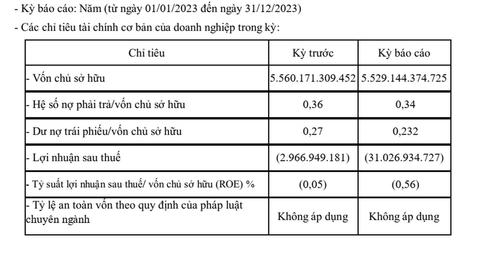 Theo đó, trong năm tài chính 2023, Công ty Cổ phần Ea Súp 3 báo lỗ hơn 31 tỷ đồng, năm 2022 doanh nghiệp này cũng báo lỗ gần 3 tỷ đồng.