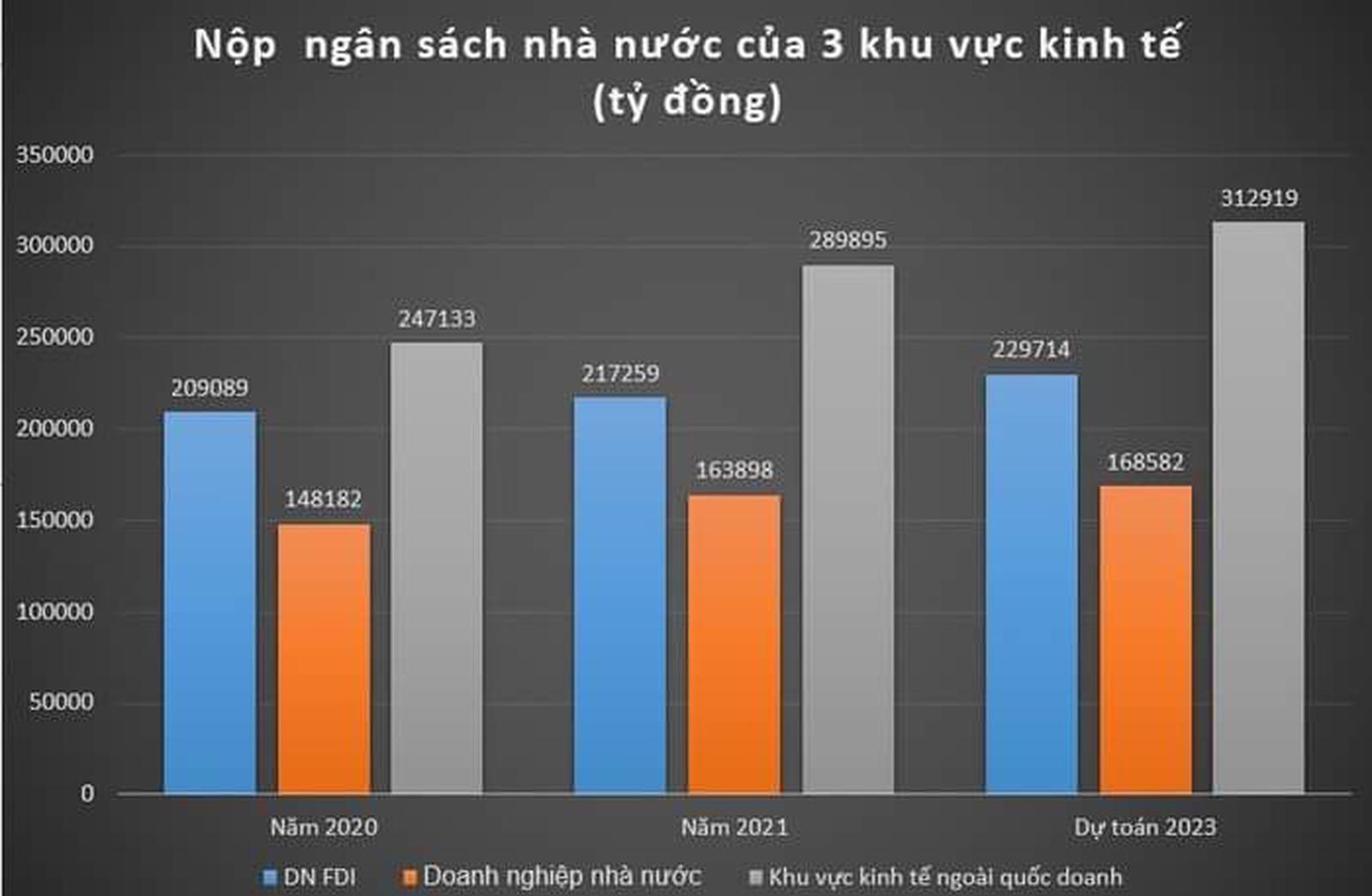 Nhìn vào số liệu tại Sách trắng doanh nghiệp 2022 được Tổng cục Thống kê biên soạn cũng thấy rằng số nộp vào ngân sách của doanh nghiệp FDI là dấu hỏi lớn. Bởi lẽ, bình quân giai đoạn 2016-2020 mỗi năm doanh nghiệp FDI tạo ra tới 392,5 nghìn tỷ đồng lợi nhuận trước thuế, chiếm tới 45,3% tổng lợi nhuận trước thuế của toàn bộ doanh nghiệp. Còn doanh nghiệp nhà nước tạo ra 198 nghìn tỷ đồng lợi nhuận trước thuế, chiếm 22,9% tổng lợi nhuận trước thuế của toàn bộ doanh nghiệp. Doanh nghiệp ngoài nhà nước tạo ra 275,1 nghìn tỷ đồng, chiếm 31,8%.