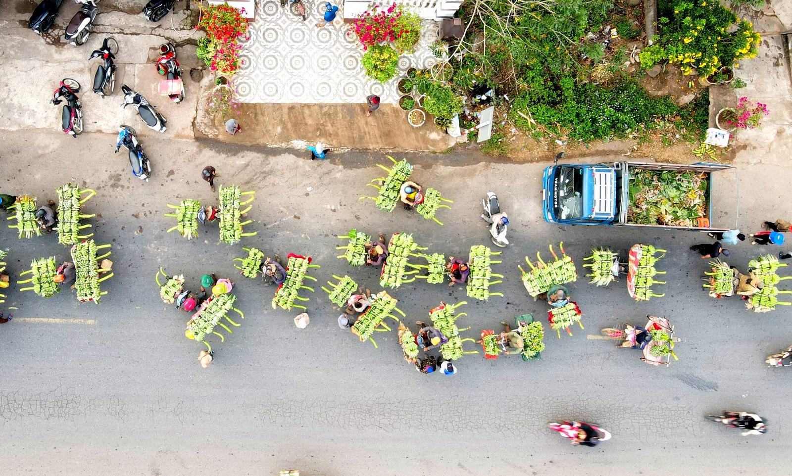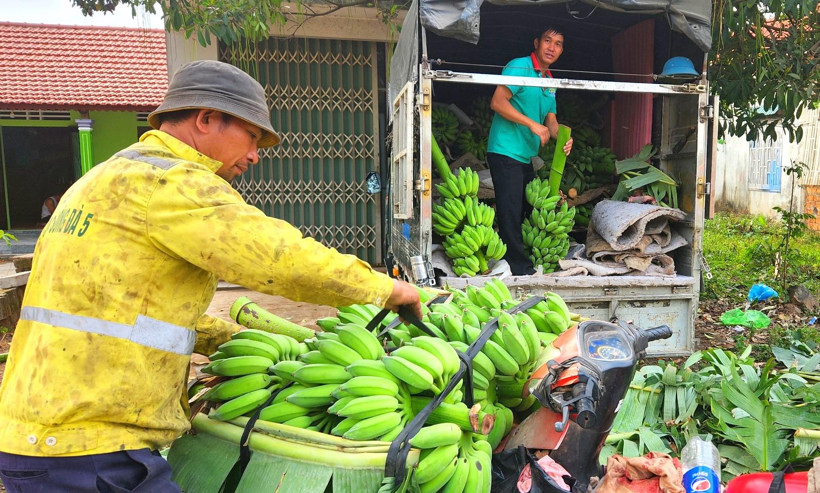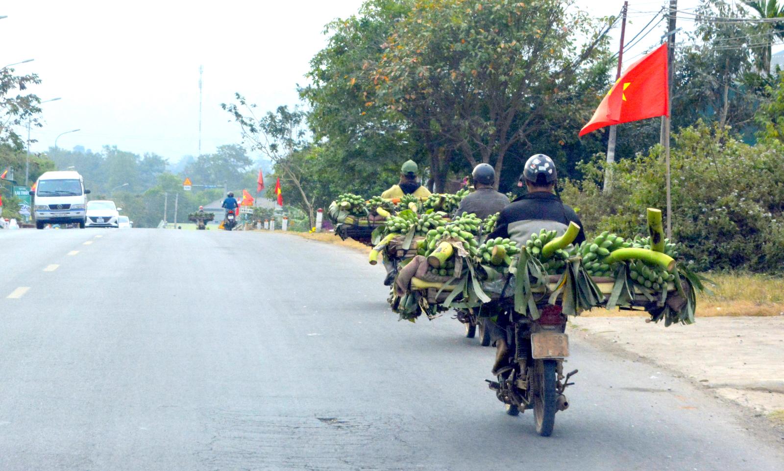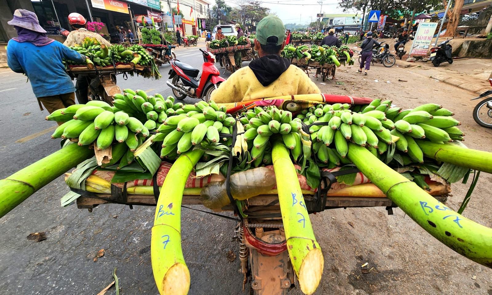 Sau một hồi thỏa thuận, xe chuối của Thảo cũng được các thương lái trả 900.000 đồng. Những buồng chuối nhanh chóng được các thương lái đánh dấu để chờ bốc lên xe đưa về xuôi tiêu thụ. Mỗi ngày trong dịp Tết Nguyên đán, có hàng chục tấn chuối từ đây xuôi về các tỉnh, thành phố của miền Trung phục vụ nhu cầu người dân.