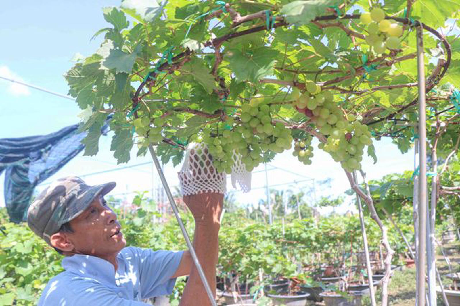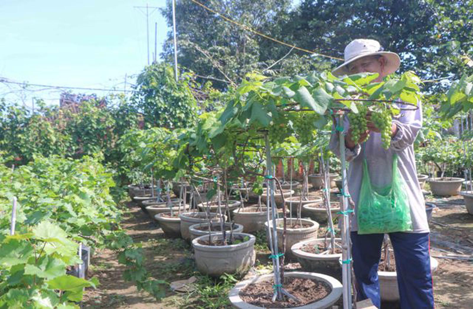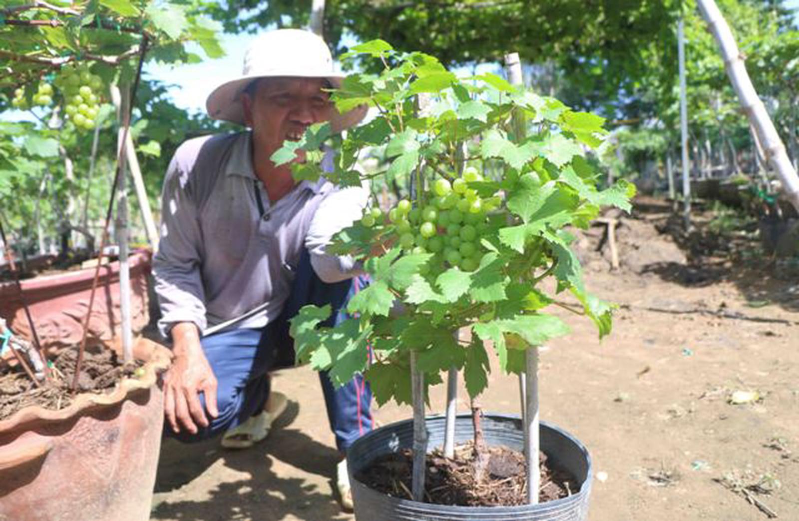 Dù vất vả, nhưng người nông dân trồng nho vẫn cho ra những chậu kiểng tươi tốt, trái xum xuê. Ảnh: Khoa Lê
