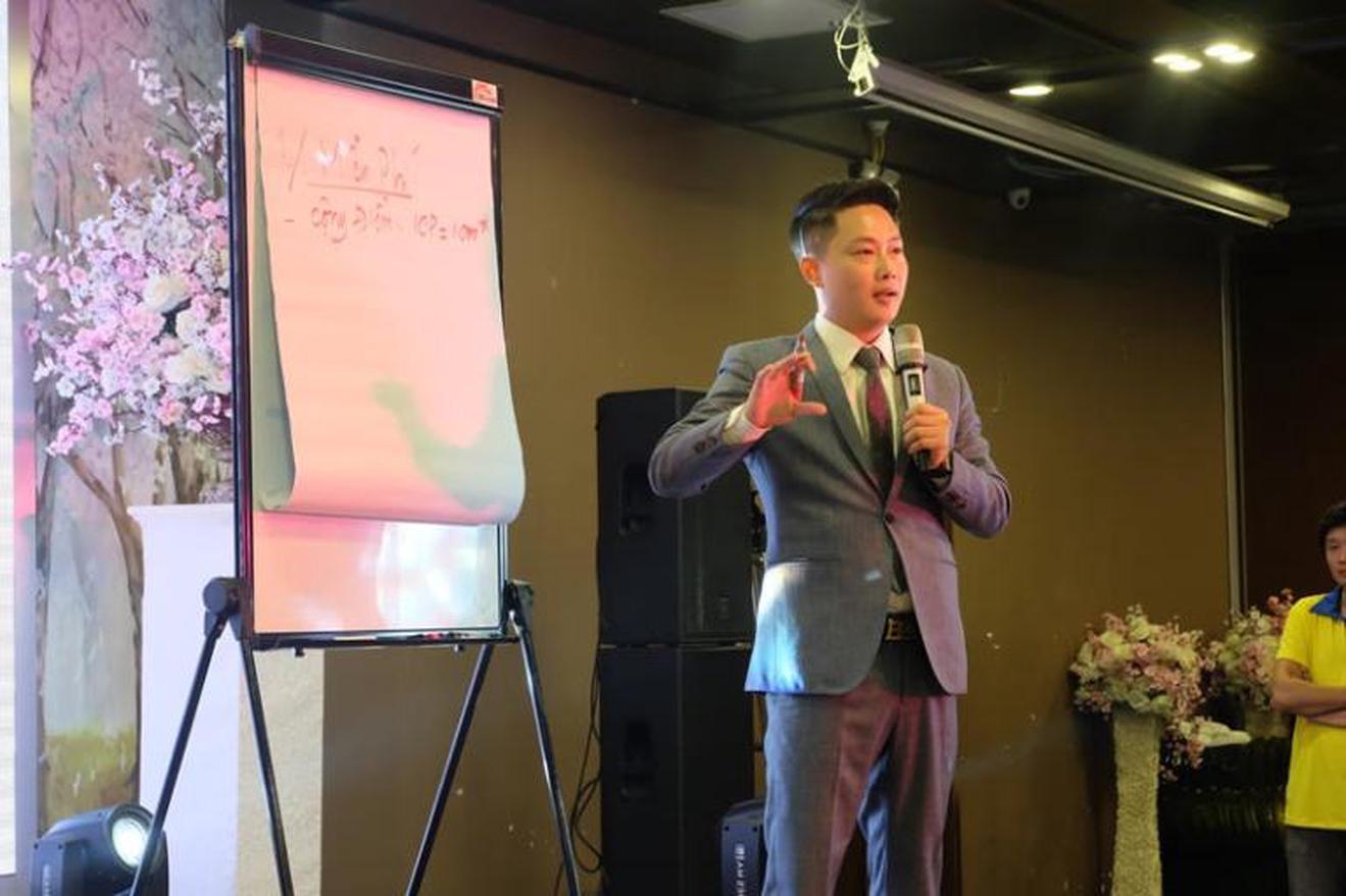 Đại diện Công ty Cổ phần Công nghệ Smart Think giới thiệu ứng dụng tiêu dùng tích điểm Smart Think. Ảnh: TH