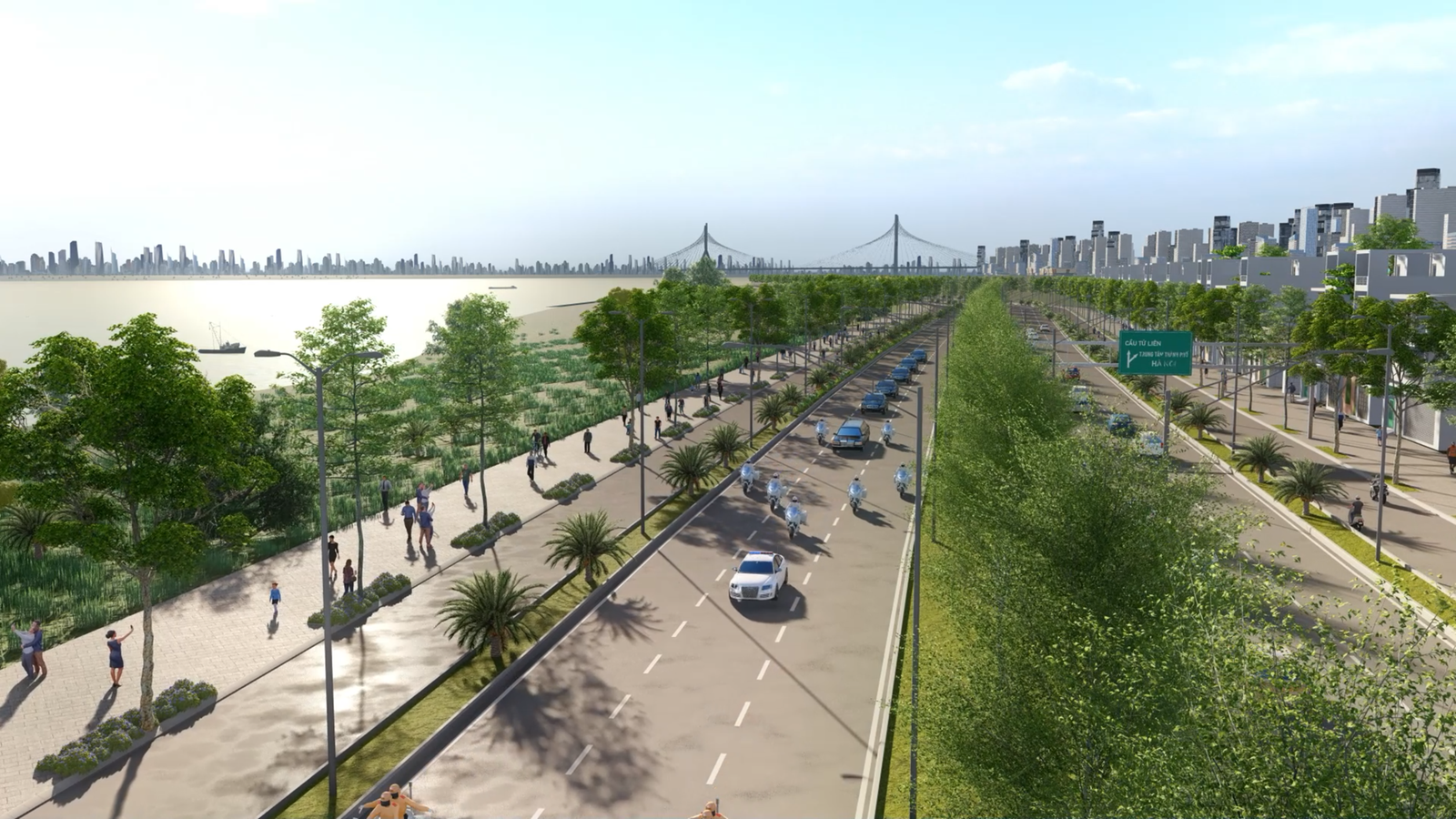 Khu vực hai bên sông Tô Lịch sẽ được cải tạo toàn diện hệ thống sân đường, vỉa hè, quảng trường, đường dạo bộ, đường xe đạp, bãi đỗ xe, sân chơi và sân thể thao, hình thành chuỗi không gian công cộng liên hoàn, an toàn và giàu tính thẩm mỹ. Song song là các công trình kiến trúc điểm nhấn như cầu đi bộ nghệ thuật, bến thuyền, đài vọng cảnh, không gian trưng bày, dịch vụ cà phê – nhà hàng… Bên cạnh đó, dự án sẽ bổ sung nhiều lớp cây bóng mát, cây thủy sinh và thảm xanh, góp phần cải thiện môi trường, chống xói mòn và phục hồi hệ sinh thái sông Tô Lịch.