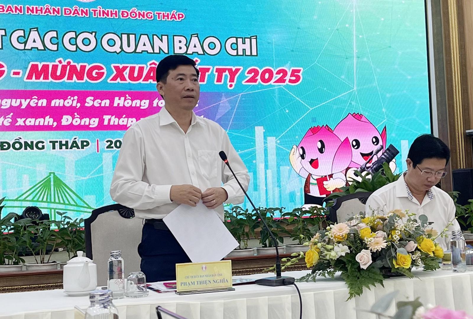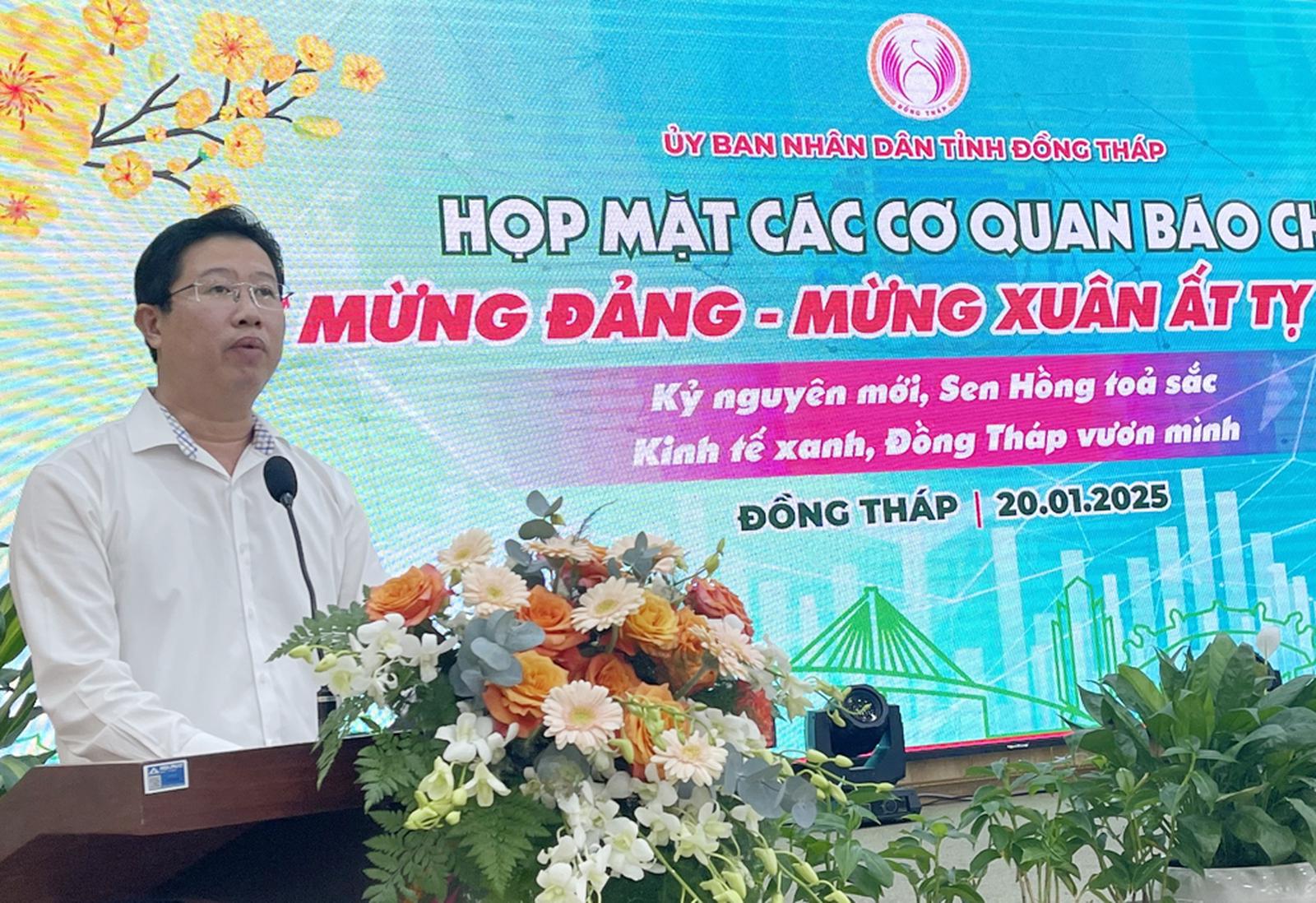 (Thanh tra) - Chiều 20/1, tại thành phố Cao Lãnh, UBND tỉnh Đồng Tháp đã tổ chức buổi gặp mặt báo chí, cung cấp thông tin tình hình kinh tế - xã hội năm 2024 của tỉnh và nhiệm vụ trọng tâm năm 2025. Chủ tịch UBND tỉnh Phạm Thiện Nghĩa cùng đại diện lãnh đạo các sở, ngành, địa phương và phóng viên các cơ quan báo chí hoạt động trên địa bàn tỉnh đã tham dự buổi gặp mặt.