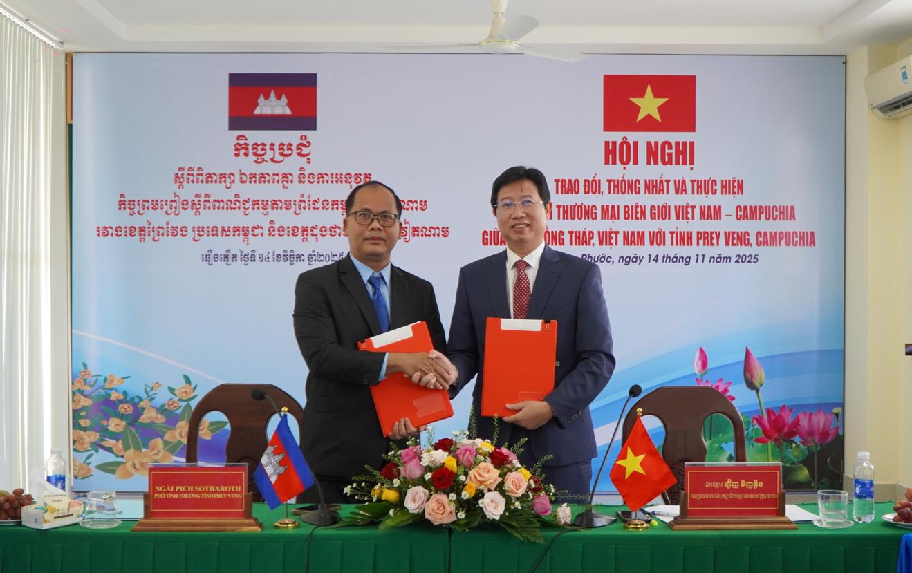 Về thúc đẩy xúc tiến thương mại và kết nối doanh nghiệp, Đồng Tháp tập trung thực hiện có hiệu quả các thỏa thuận hợp tác, các dự án đầu tư với Campuchia, tích cực hỗ trợ các doanh nghiệp mở rộng các hoạt động đầu tư và thương mại xuyên biên giới với Campuchia; Thường xuyên phối hợp tổ chức hội đàm định kỳ, trao đổi với tỉnh Prey Veng về các chính sách thương mại của hai nước, đẩy nhanh tiến độ thông quan hàng hóa tại các cửa khẩu nhằm tạo điều kiện thuận lợi cho các thương nhân xuất nhập khẩu, trao đổi hàng hóa qua biên giới để tránh tình trạng ùn tắc hàng hóa, đặc biệt là mặt hàng nông sản, thủy sản.