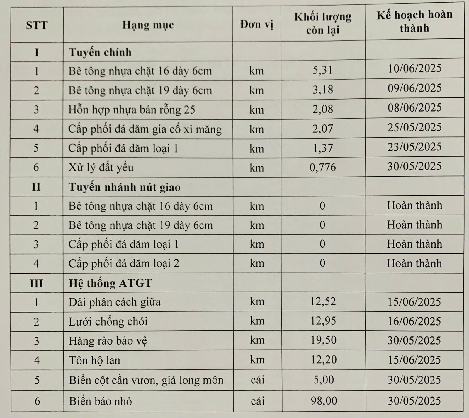 Theo ghi nhận của PV vào những ngày cuối tháng 5, để Dự án thông xe vào ngày 30/6 chủ đầu tư và các nhà thầu đang huy động nguồn lực bố trí 40 mũi thi công với 409 máy móc thiết bị và 949 kỹ sư, công nhân, lái máy.