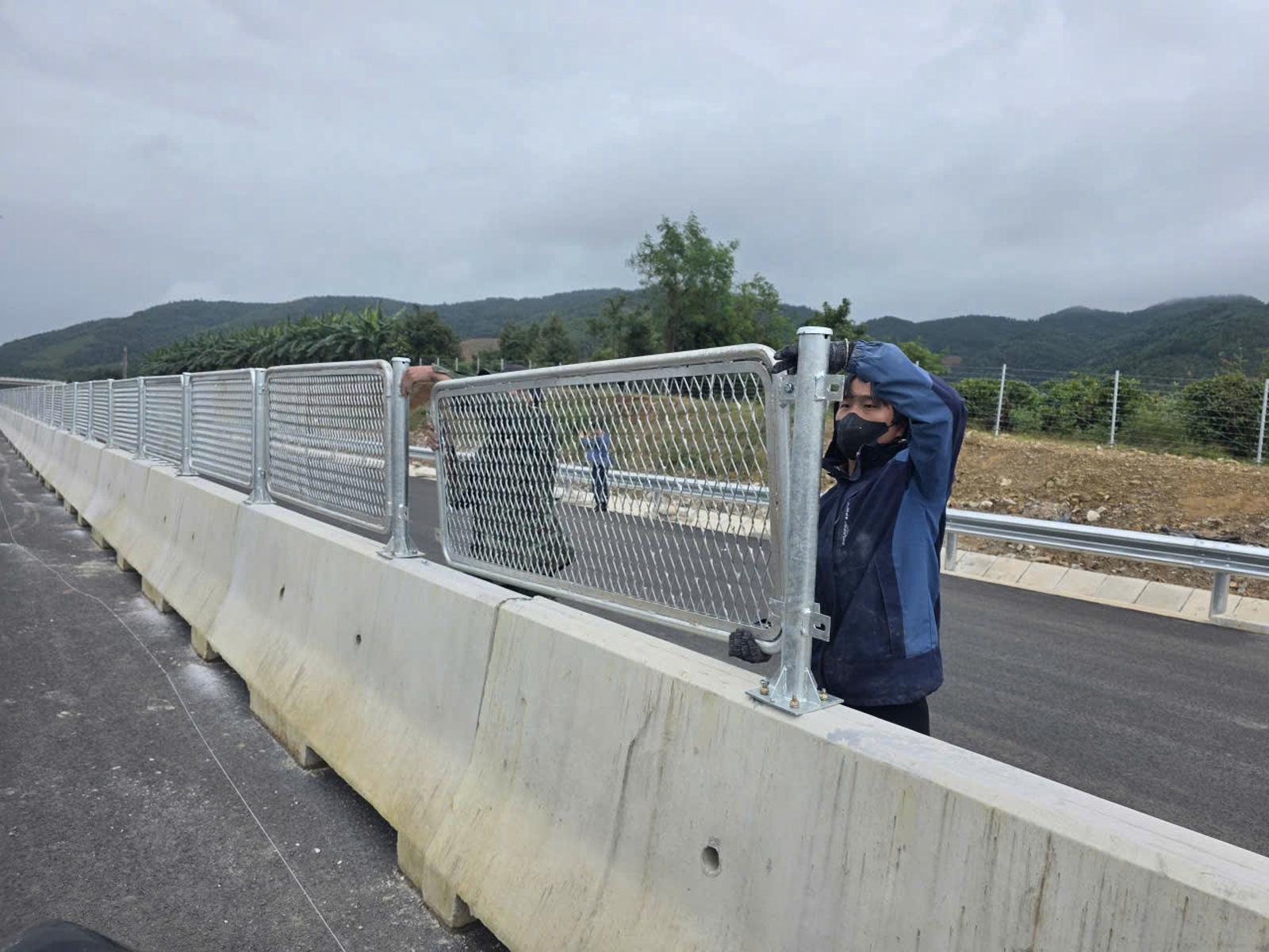 Công nhân lắp đặt hàng rào an toàn trên tuyến cao tốc Khánh Hòa – Buôn Ma Thuột, đoạn thuộc Dự án thành phần 3. Ảnh: HT