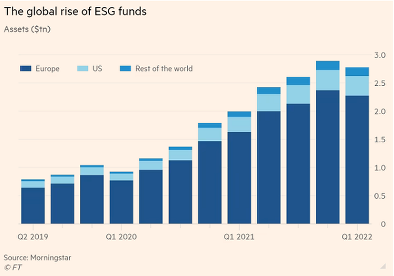 Đại dịch Covid-19 xuyên suốt 2 năm thậm chí còn đẩy nhanh hơn xu hướng này, khiến chiến lược đầu tư chuyển dịch sang các yếu tố ESG nhiều hơn so với các chỉ tiêu tài chính truyền thống. Theo Financial Times, bất chấp nhiều người vẫn đang “bán tín bán nghi” về ESG thì dòng tiền đổ vào các doanh nghiệp tuân thủ ESG đã mạnh mẽ hơn bao giờ hết. Ông Carsten Stendevad, Giám đốc đầu tư mảng phát triển bền vững của quỹ Bridgewater Associates cũng phát biểu trên Financial Times rằng: "Đối với châu Âu nói riêng, tham vọng xanh giờ đây đồng bộ với tham vọng an ninh quốc gia và đảm bảo chủ quyền năng lượng và động lực này sẽ thúc đẩy quá trình chuyển đổi sang năng lượng tái tạo vì các quốc gia không muốn phụ thuộc vào một quốc gia khác về năng lượng”.
