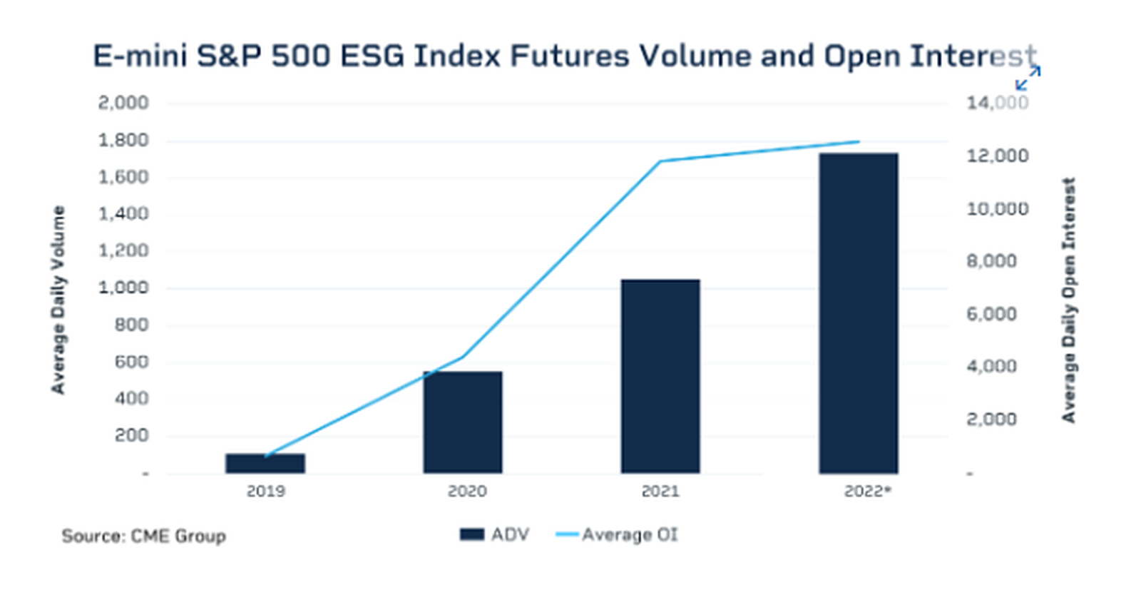 Cũng theo thống kê của CME Group, khối lượng giao dịch trung bình hàng ngày trong hợp đồng tương lai E-mini S&P 500 ESG trong quý đầu tiên của năm 2022 đã tăng hơn 100% so với cùng kỳ năm ngoái và đã tăng đều đặn kể từ khi hợp đồng ra mắt vào tháng 11 năm 2019.